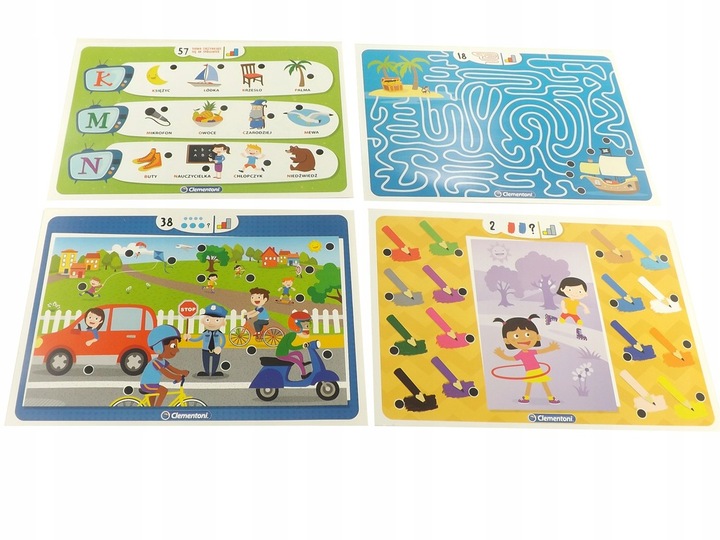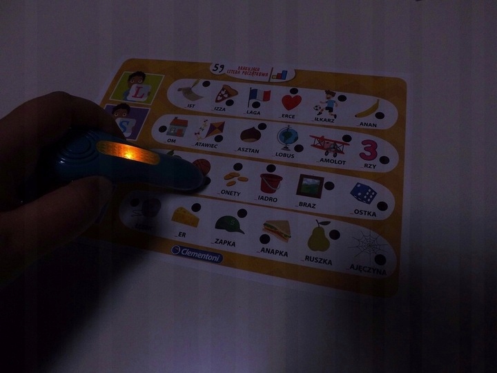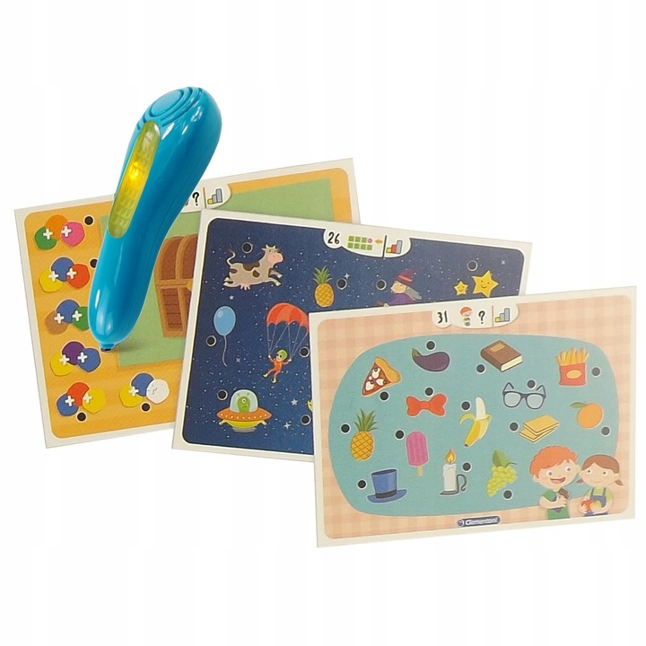 - Mówiące elektroniczne pióro prowadzi dzieci w trakcie gry, wskazuje, czy ich odpowiedź jest poprawna.
