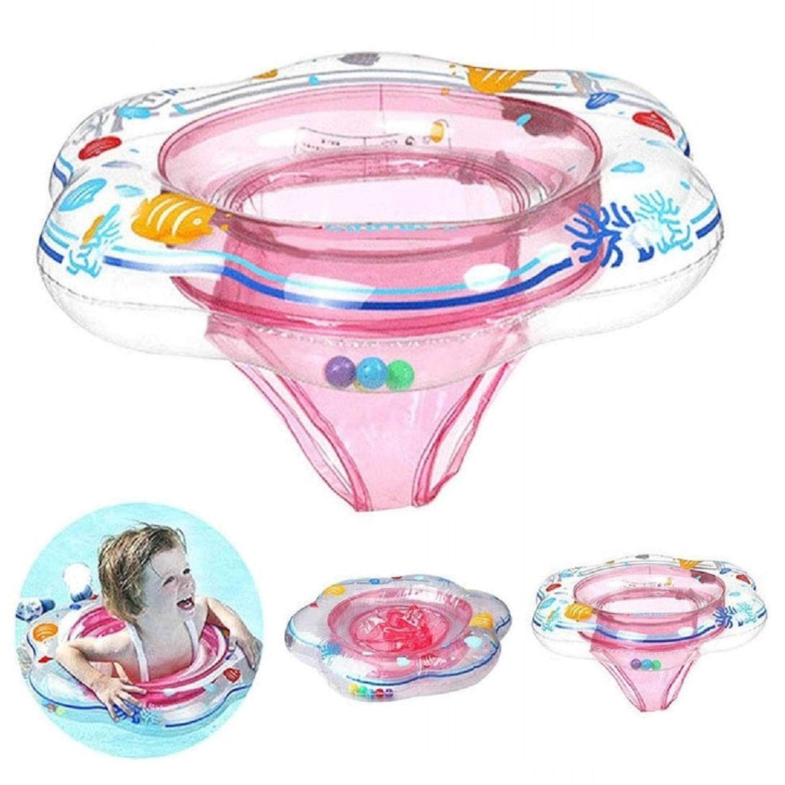 FOTELIK KÓŁKO DO PŁYWANIA DLA DZIECI Z MAJTECZKAMI GRZECHOTKI