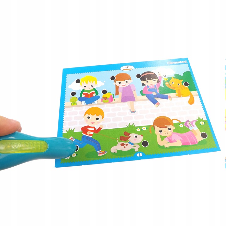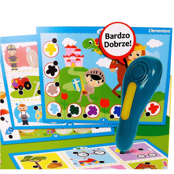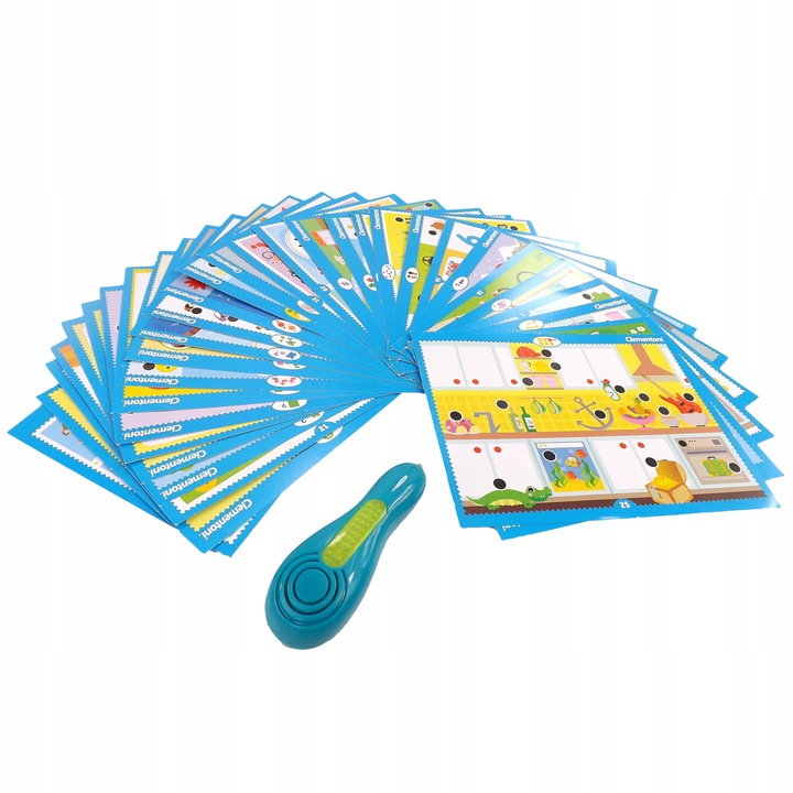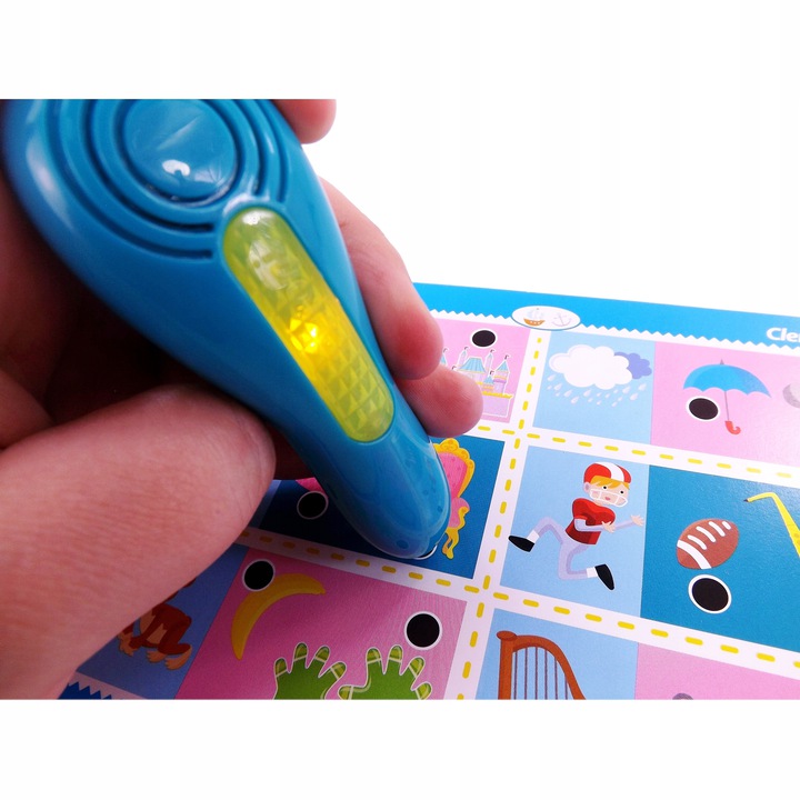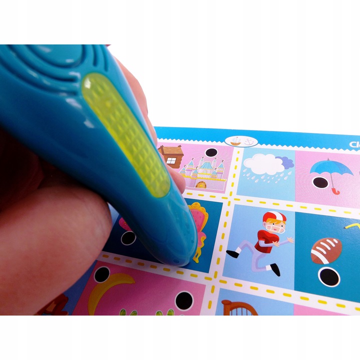 - Mówiący elektroniczny długopis prowadzi dzieci w trakcie gry, wskazuje, czy ich odpowiedź jest poprawna.
