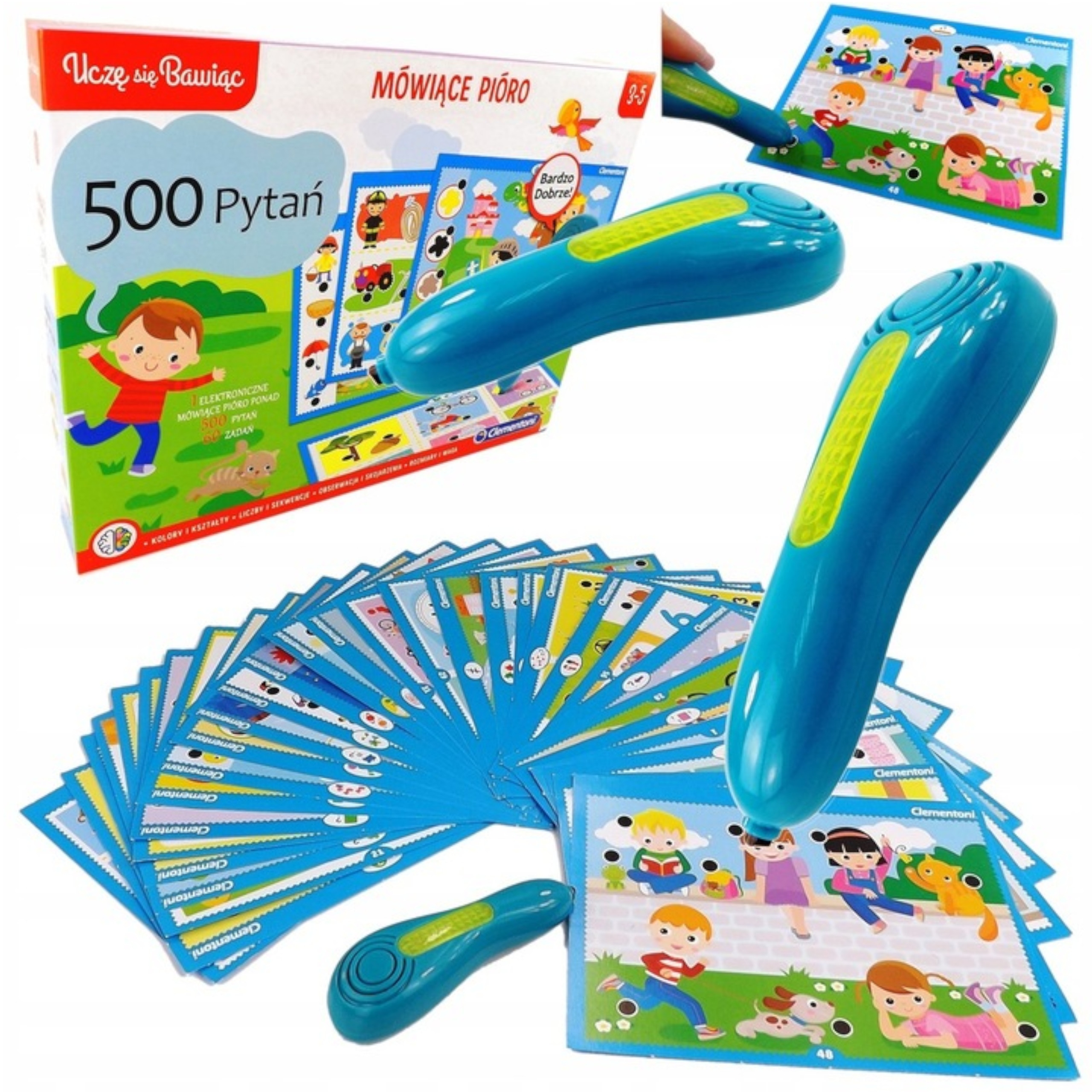Mówiące pióro 500 pytań to edukacyjna gra polegająca na pytaniach i odpowiedziach opracowana specjalnie dla dzieci w wieku przedszkolnym.