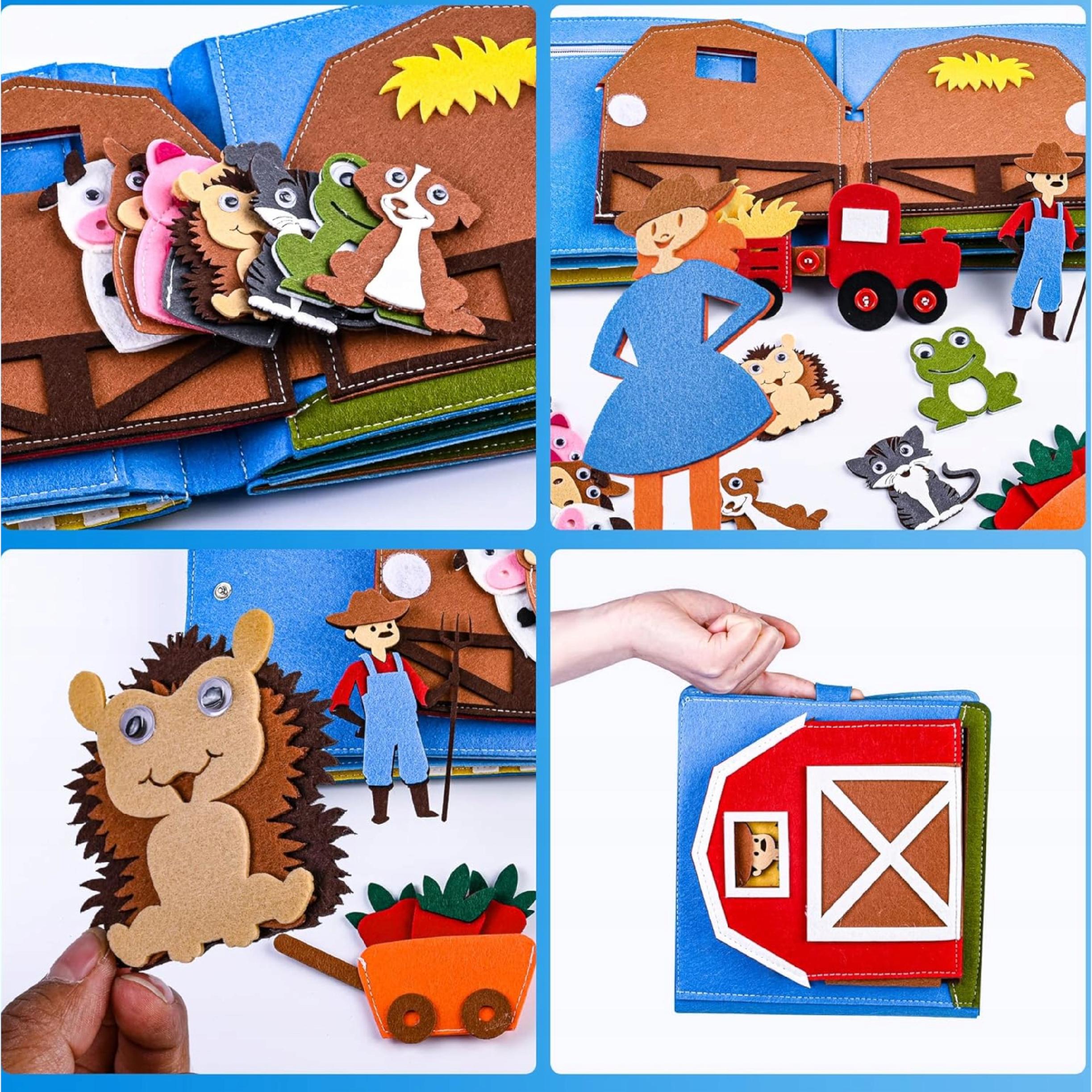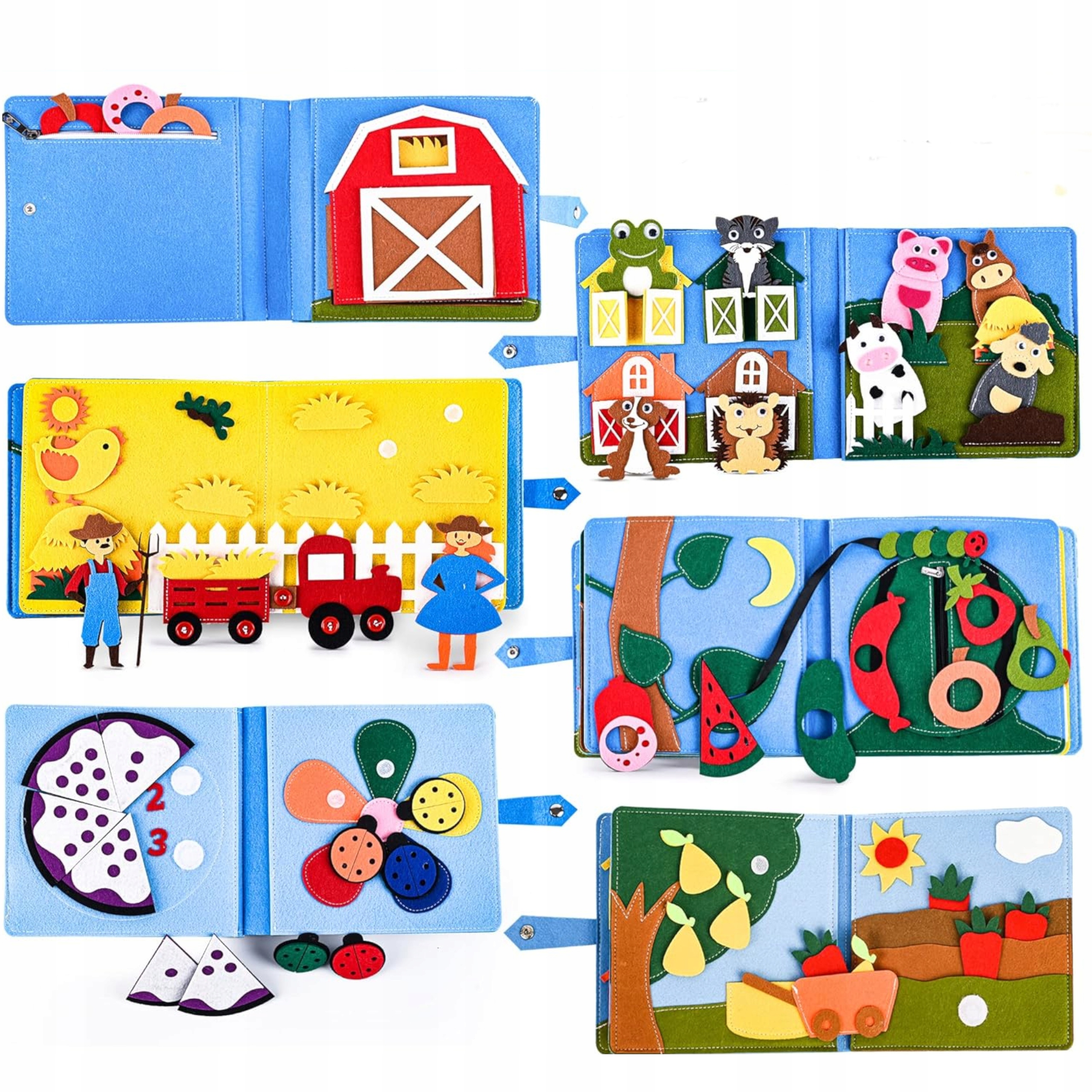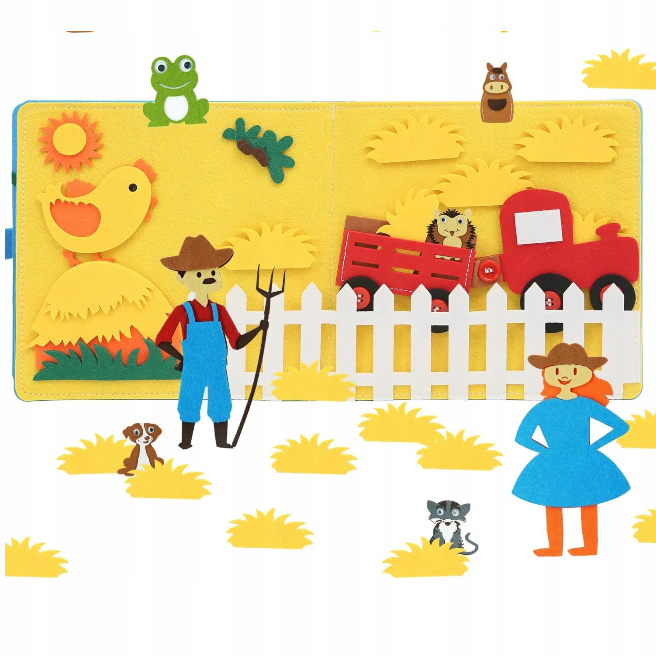 Książeczka filcowa odczepiane elementy tablica 3D Montessori farma wczesna nauka