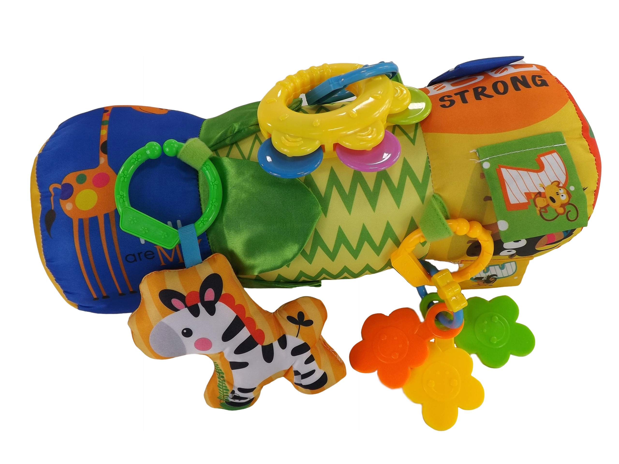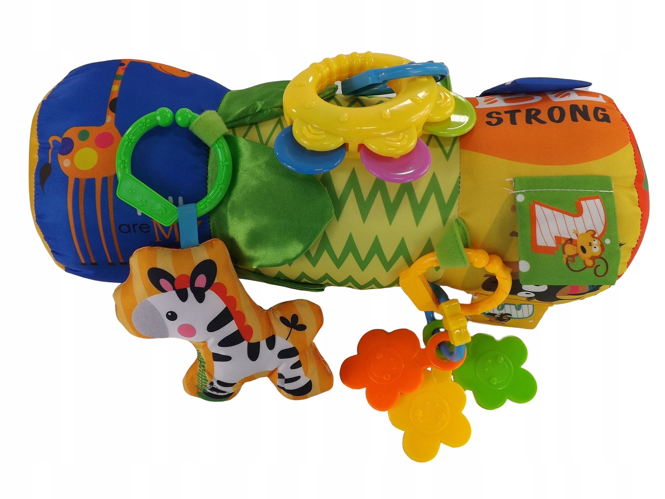 Malutkie dzieci nie bawią się jeszcze zabawkami, ale poznają świat. Walec z szeleszczącymi elementami oraz grzechotkami na pewno zainteresuje i zaintryguje Twojego Malucha.