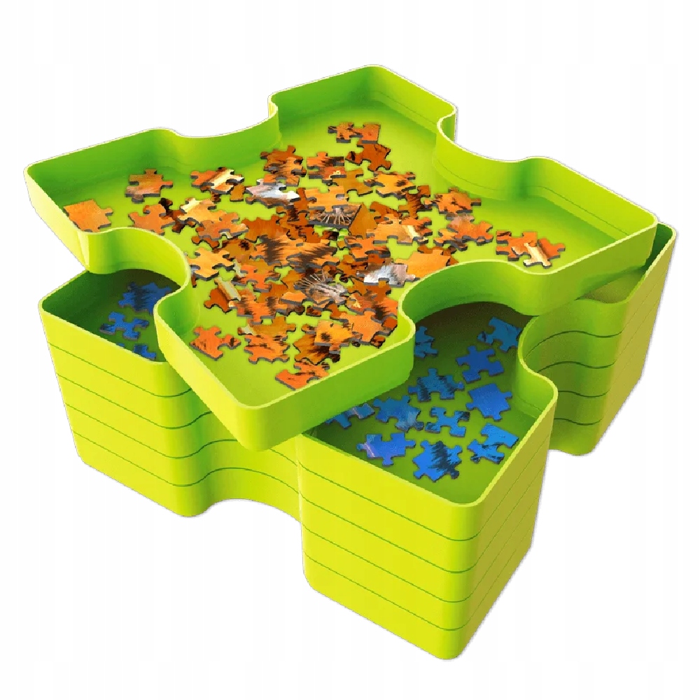 - Wygodne przechowywanie i przenoszenie – dopasowane pudełko umożliwi łatwe przechowywanie i przenoszenie pojemników z posortowanymi puzzlami.