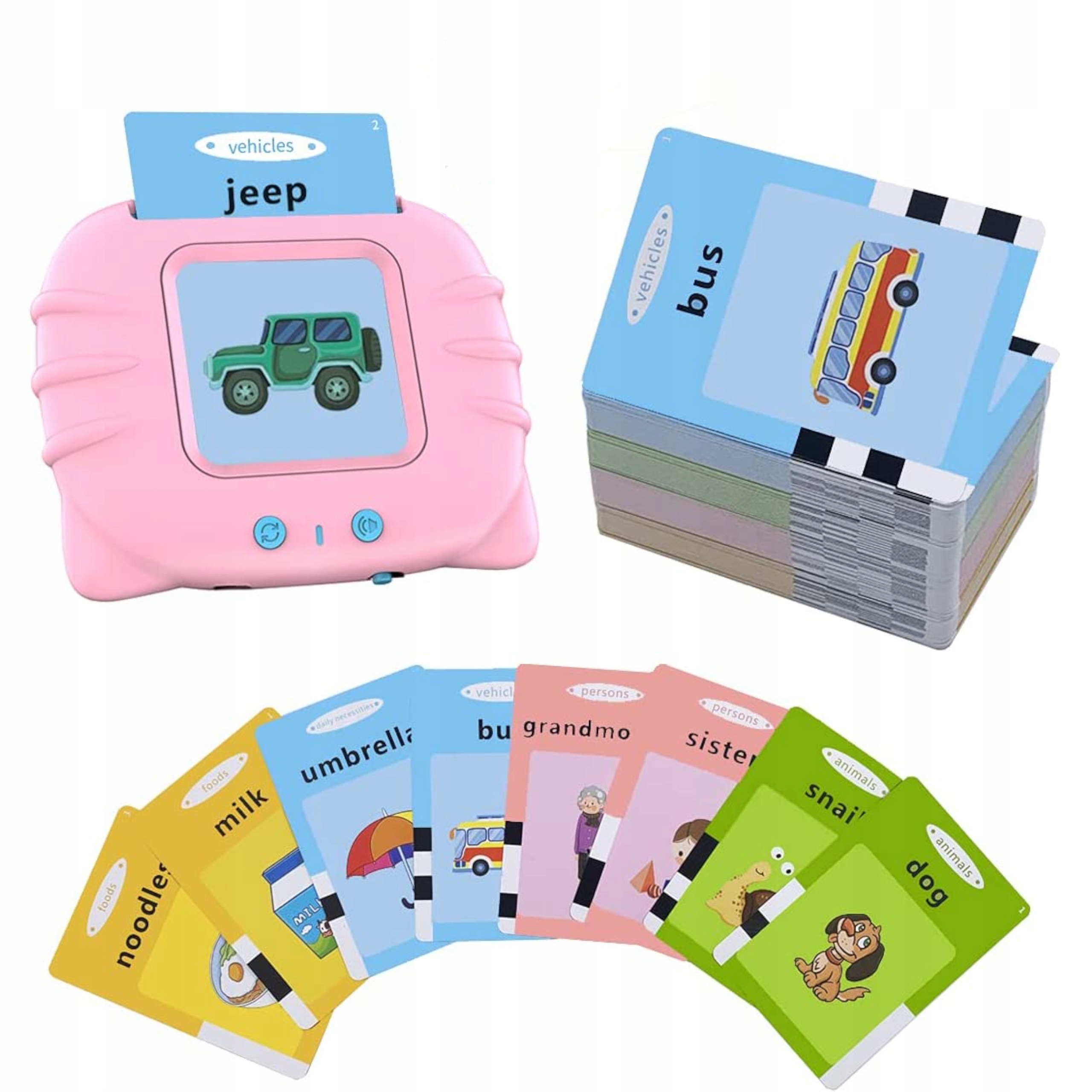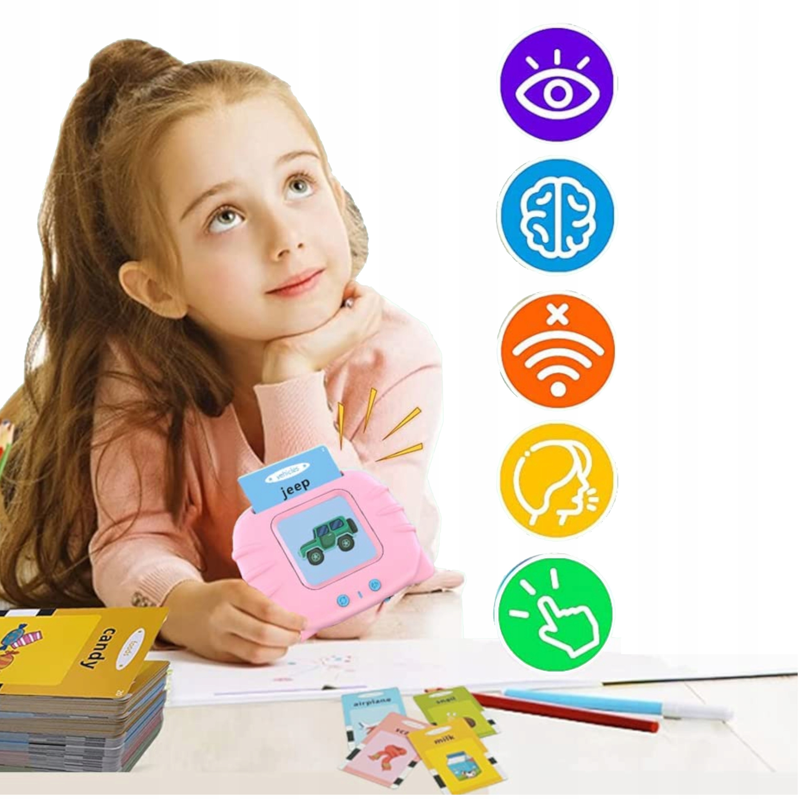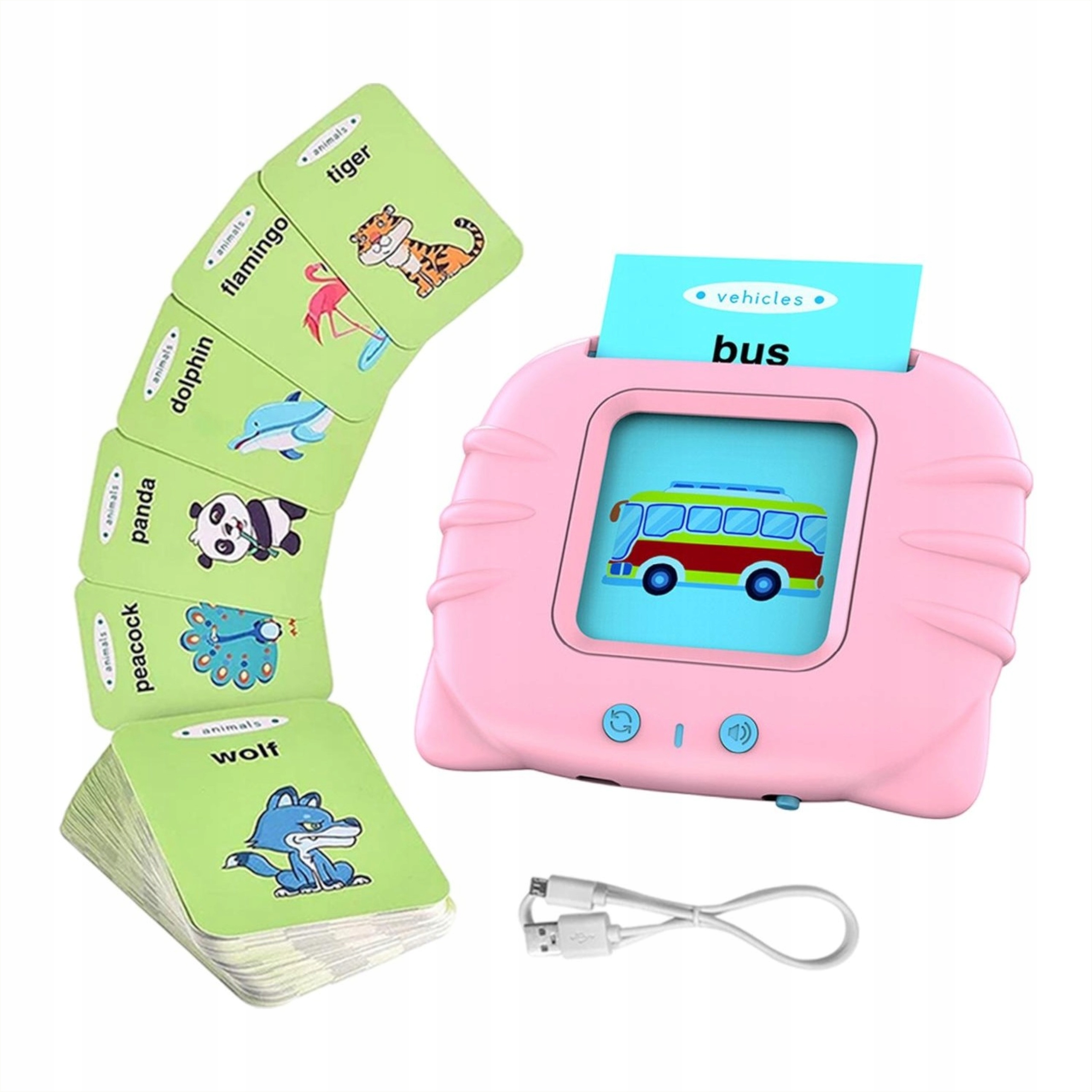 Wsuń obrazek do czytnika, a on na głos wypowie dane słówko. Nauka poprzez świetną zabawę, zadbaj o rozwój swojego dziecka od najmłodszych lat.