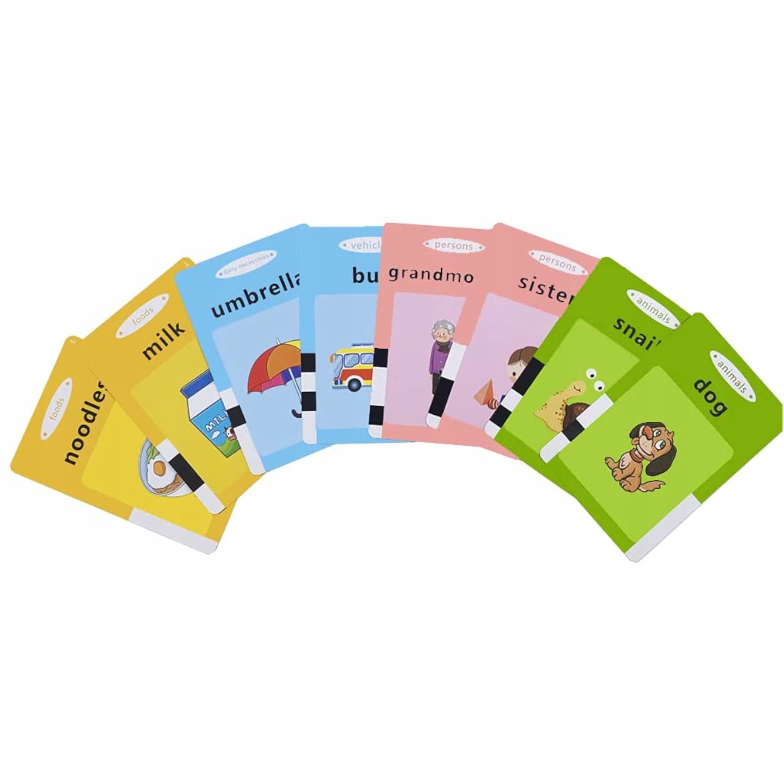 - 112 dwustronnych kart ze słówkami i obrazkami (razem 224 słówka) w języku angielskim