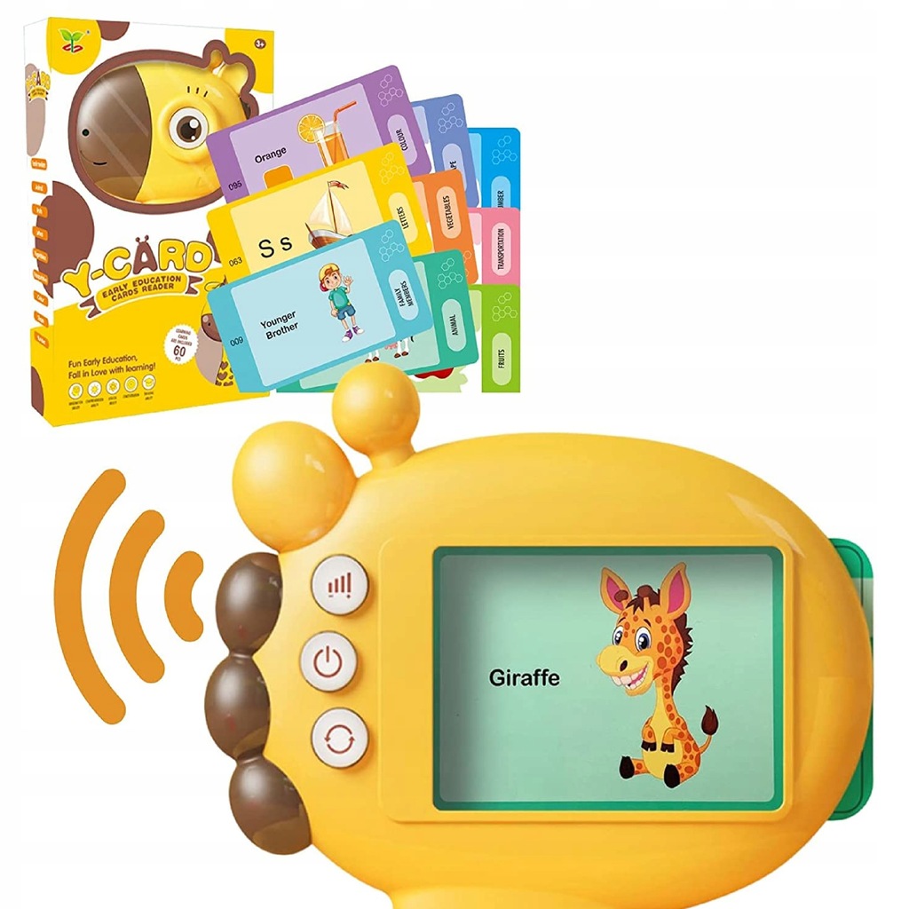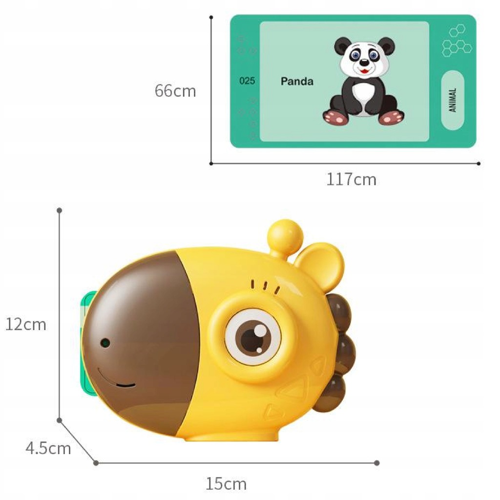 Świetna zabawka do wczesnej nauki języka angielskiego. interaktywny edukacyjny czytnik kart w kształcie żyrafy do nauki języka angielskiego uczy aż 120 słówek z kart z obrazkami.