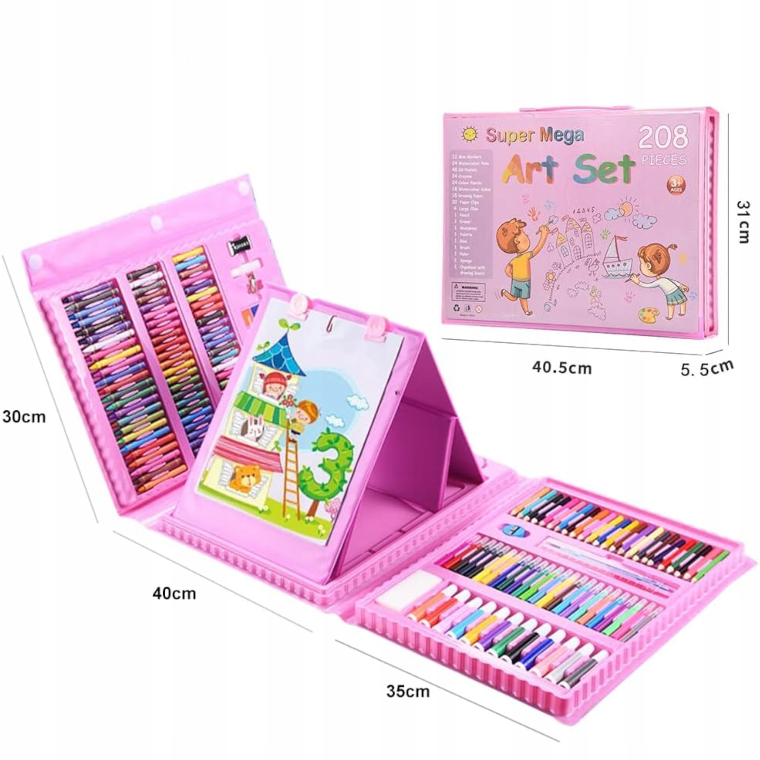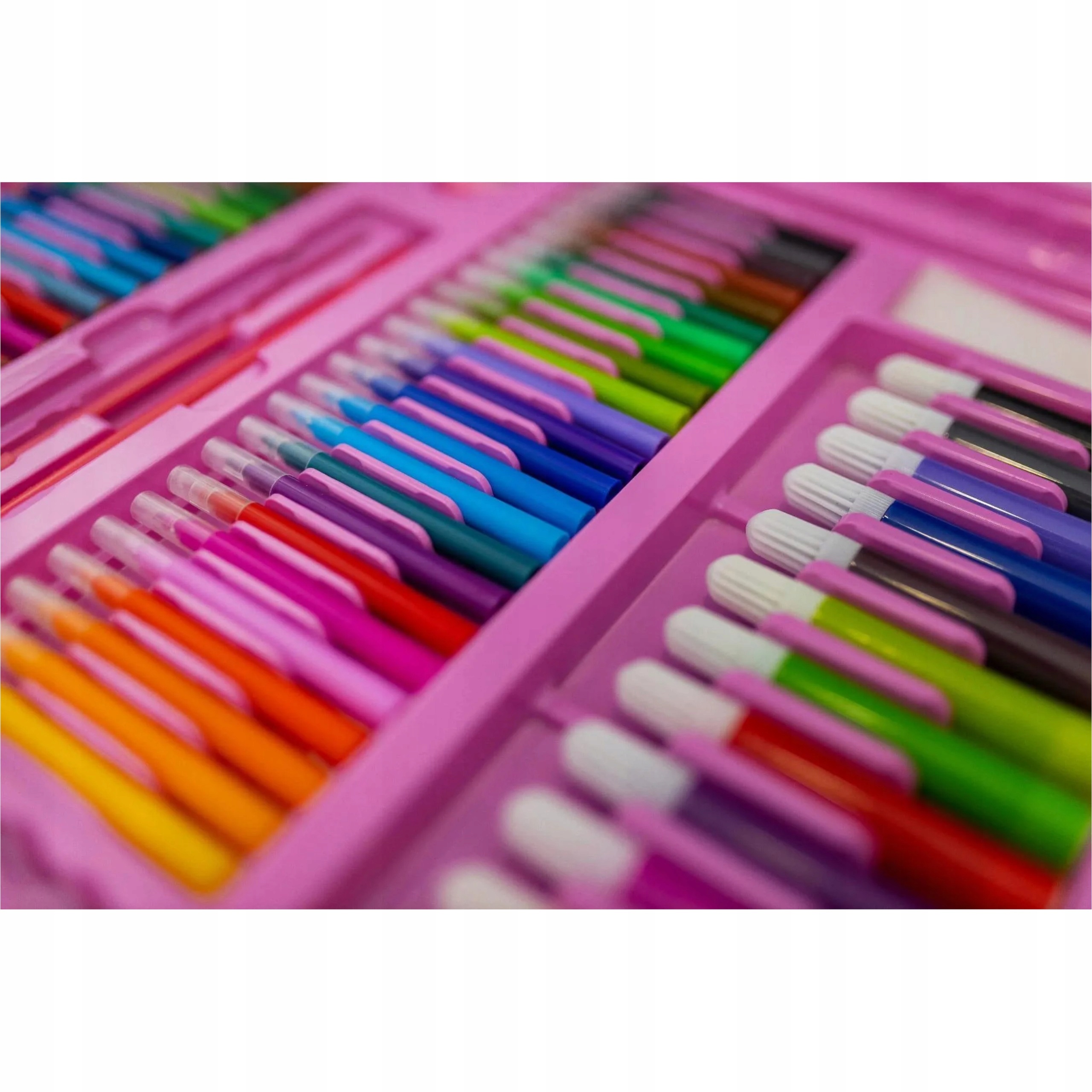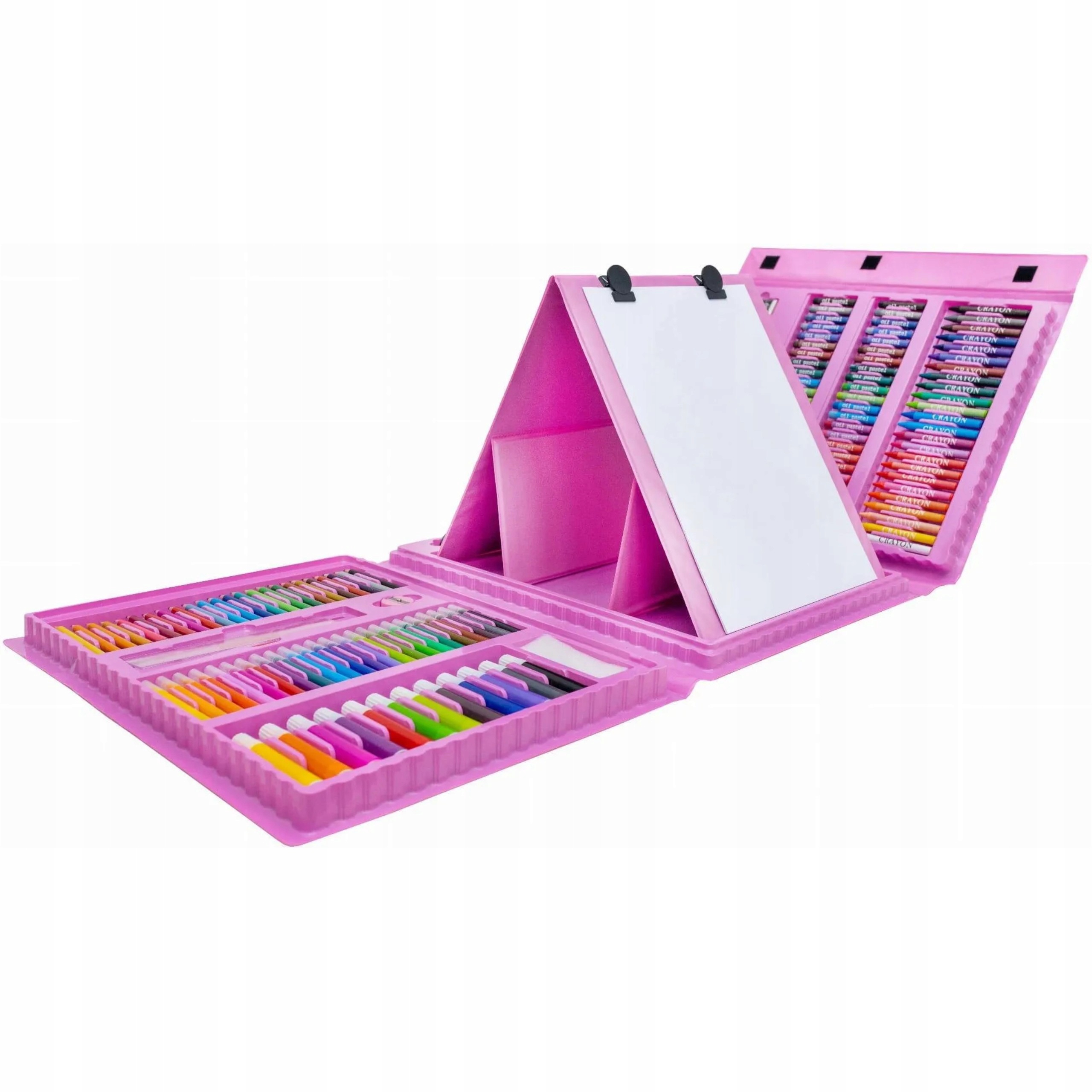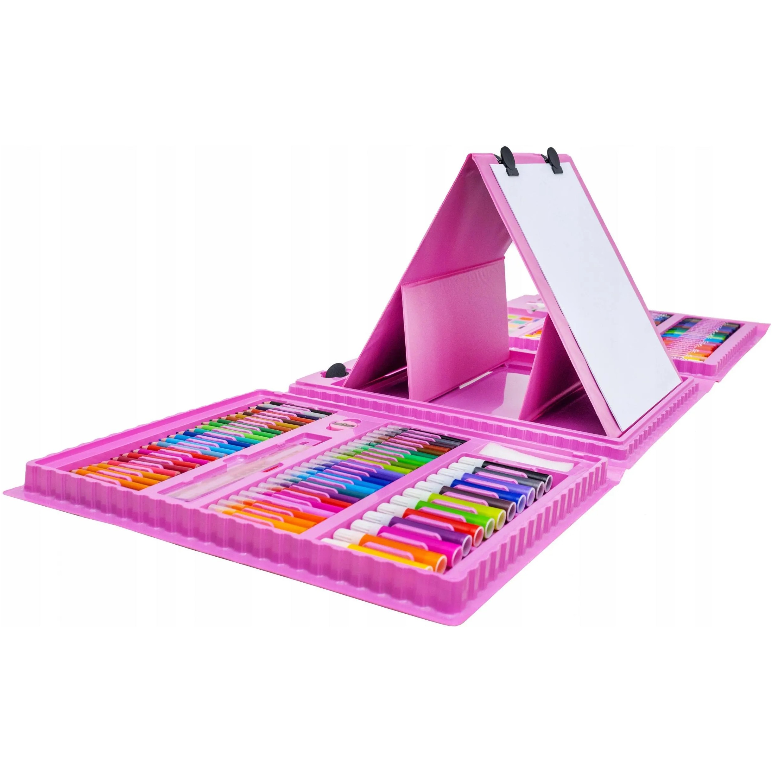 Zestaw artystyczny aż 203 elementów do malowania w walizce to świetny sposób na naukę poprzez zabawę dla Twojego dziecka. Duży zestaw akcesoriów artystycznych już od najmłodszych lat pobudza wyobraźnie, ćwiczy kreatywność oraz koncentrację. Edukacyjna zabawka, która rozwinie w dziecku zdolności plastyczne, które zaowocują w dalszej nauce w przedszkolu, a później w szkole. Walizka w ładnych odcieniach koloru różowego to idealny prezent dla każdego dziecka, które lubi rysować.