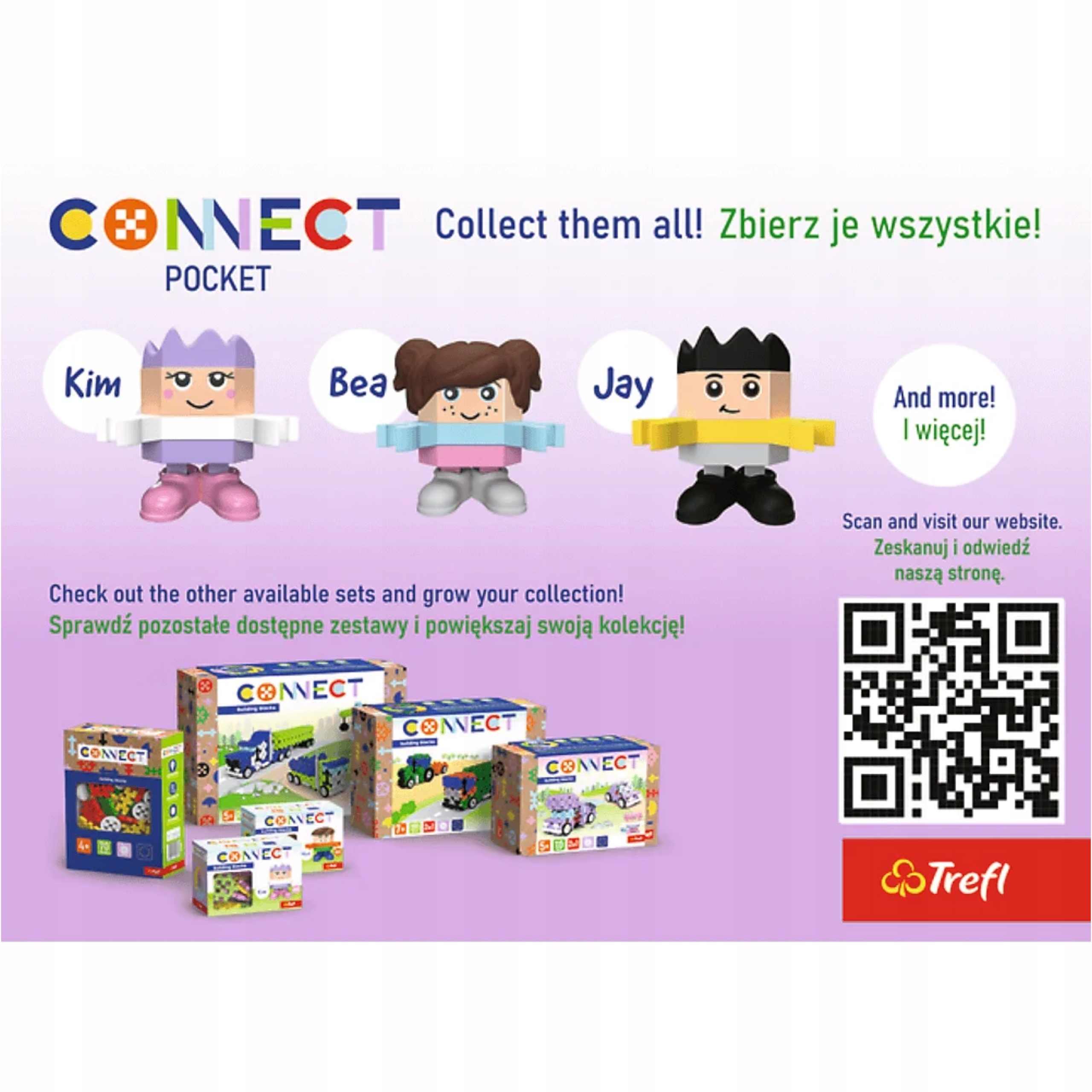 Zestaw klocków Connect Pocket zawiera aż 35 klocków, z których można ułożyć swoje dowolne konstrukcje lub według załączonej ulotki. . Figurka dziewczyny o imieniu Kim, pozwala na tworzenie własnych historii, pobudzając wyobraźnię dziecka.