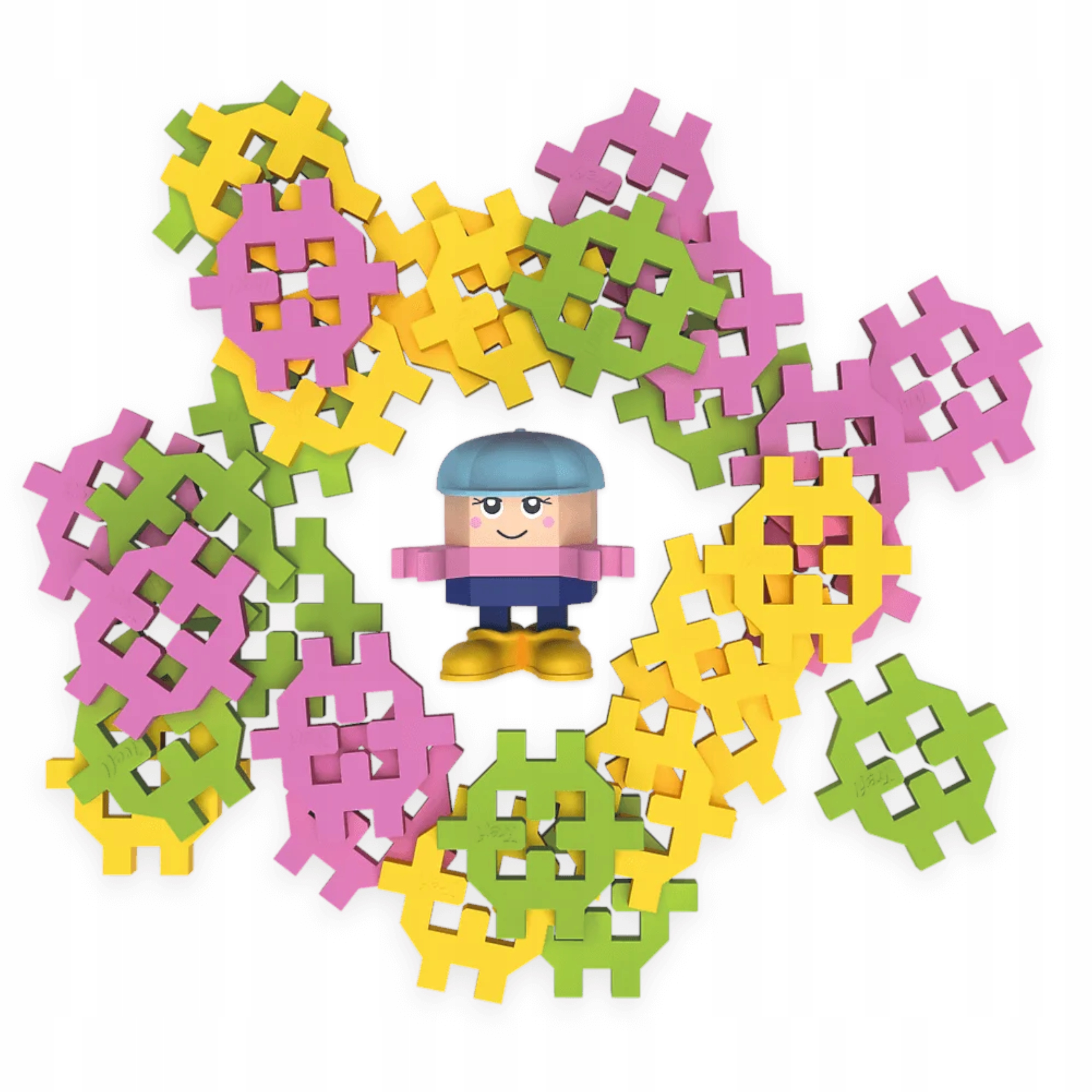 Dzięki różnym kształtom klocuszków dzieci mogą cieszyć się nie tylko tworzeniem, ale też dynamiczną zabawą, a specjalnie zaprojektowane elementy zapewniają stabilność konstrukcji.