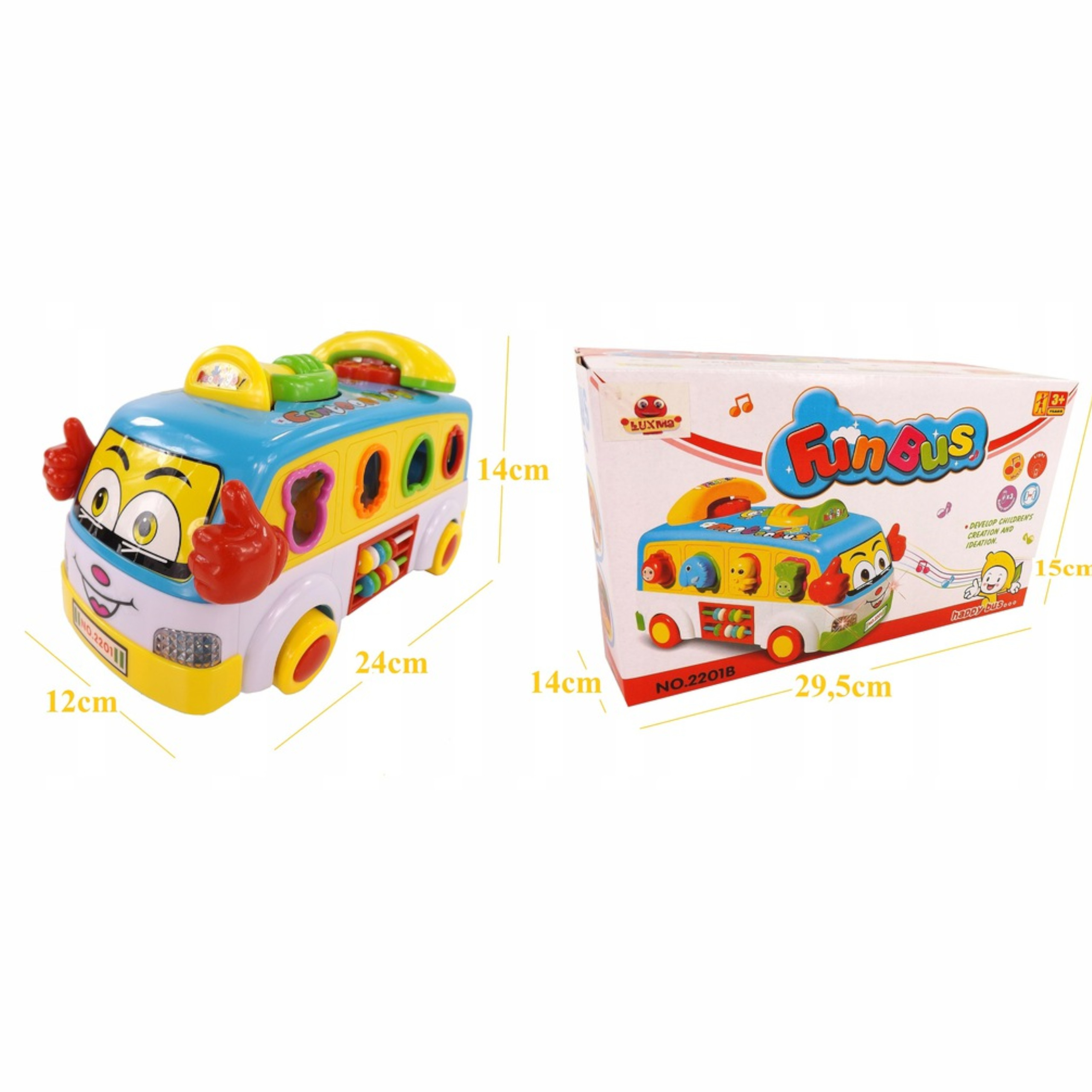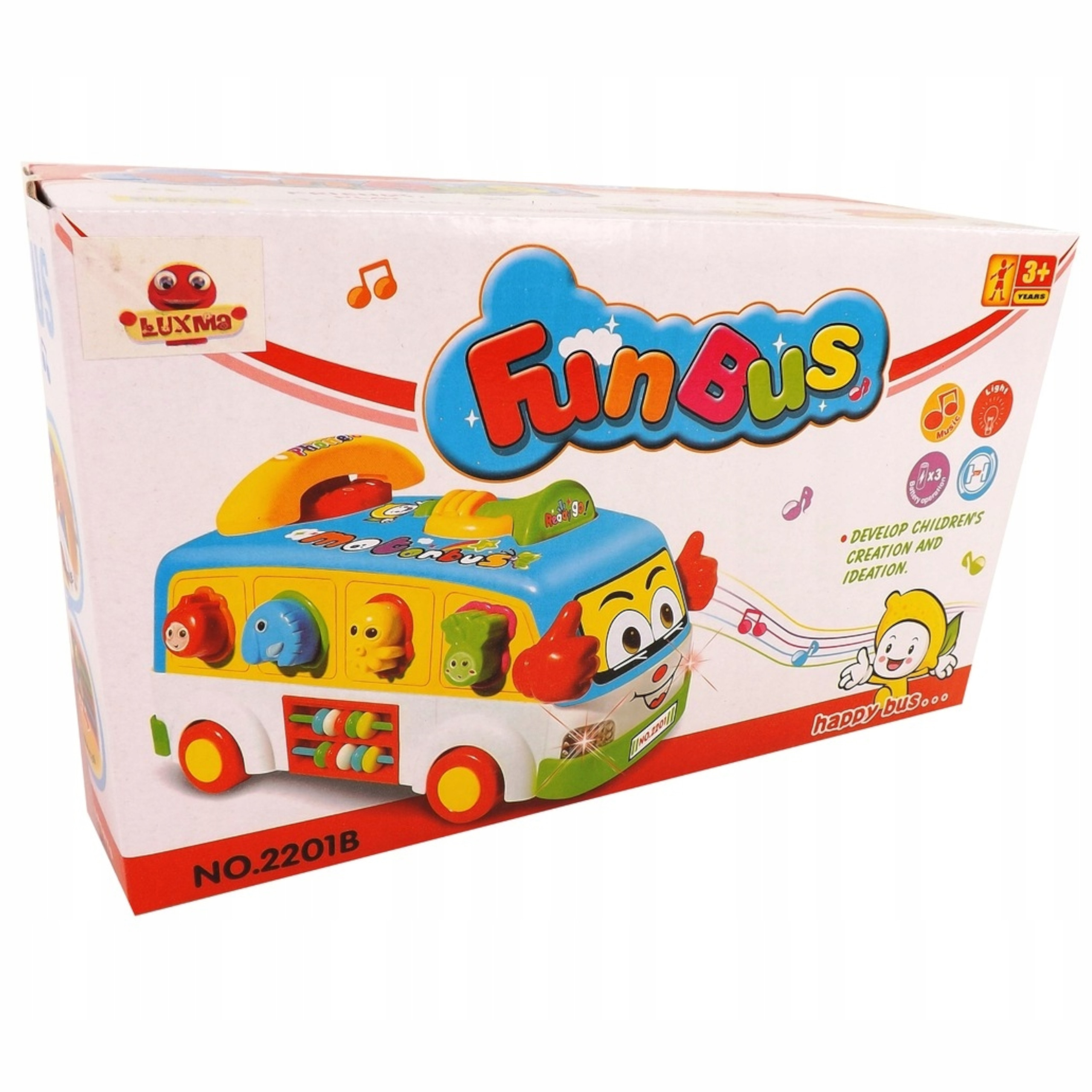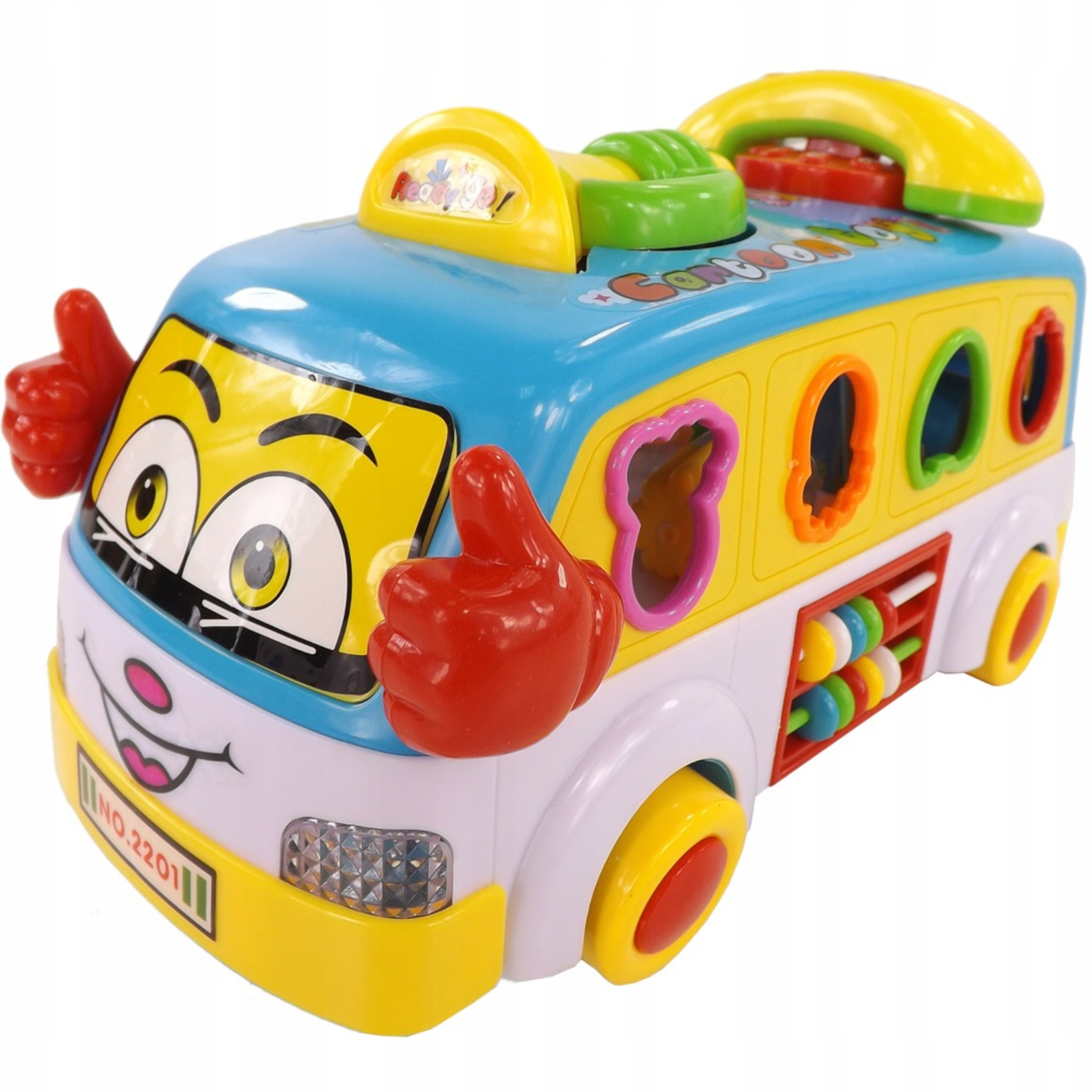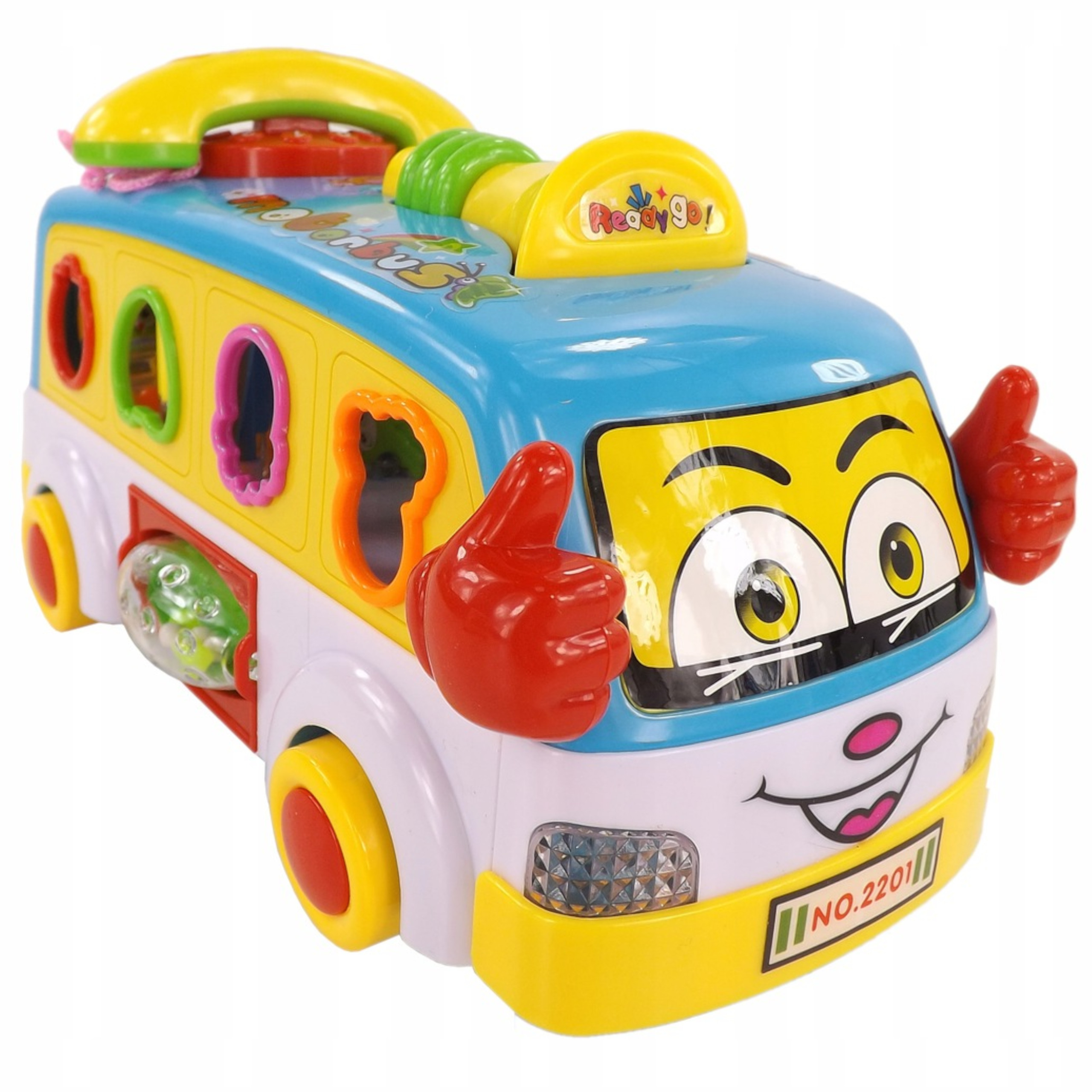 Interaktywny autobusik z sorterem, telefonem i klaksonem to świetna edukacyjna zabawka dla Twojego Malucha, która rozwija jego zdolności manulane.
