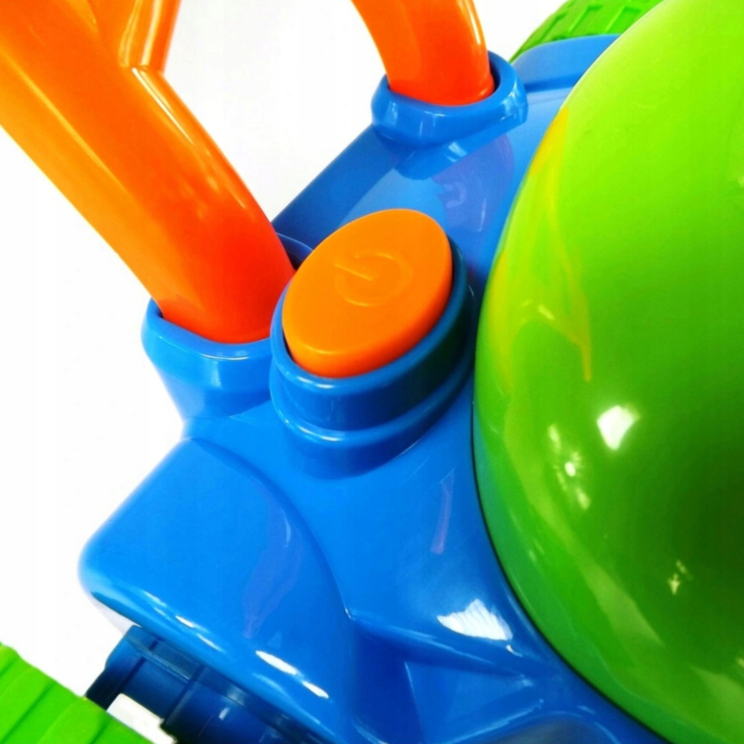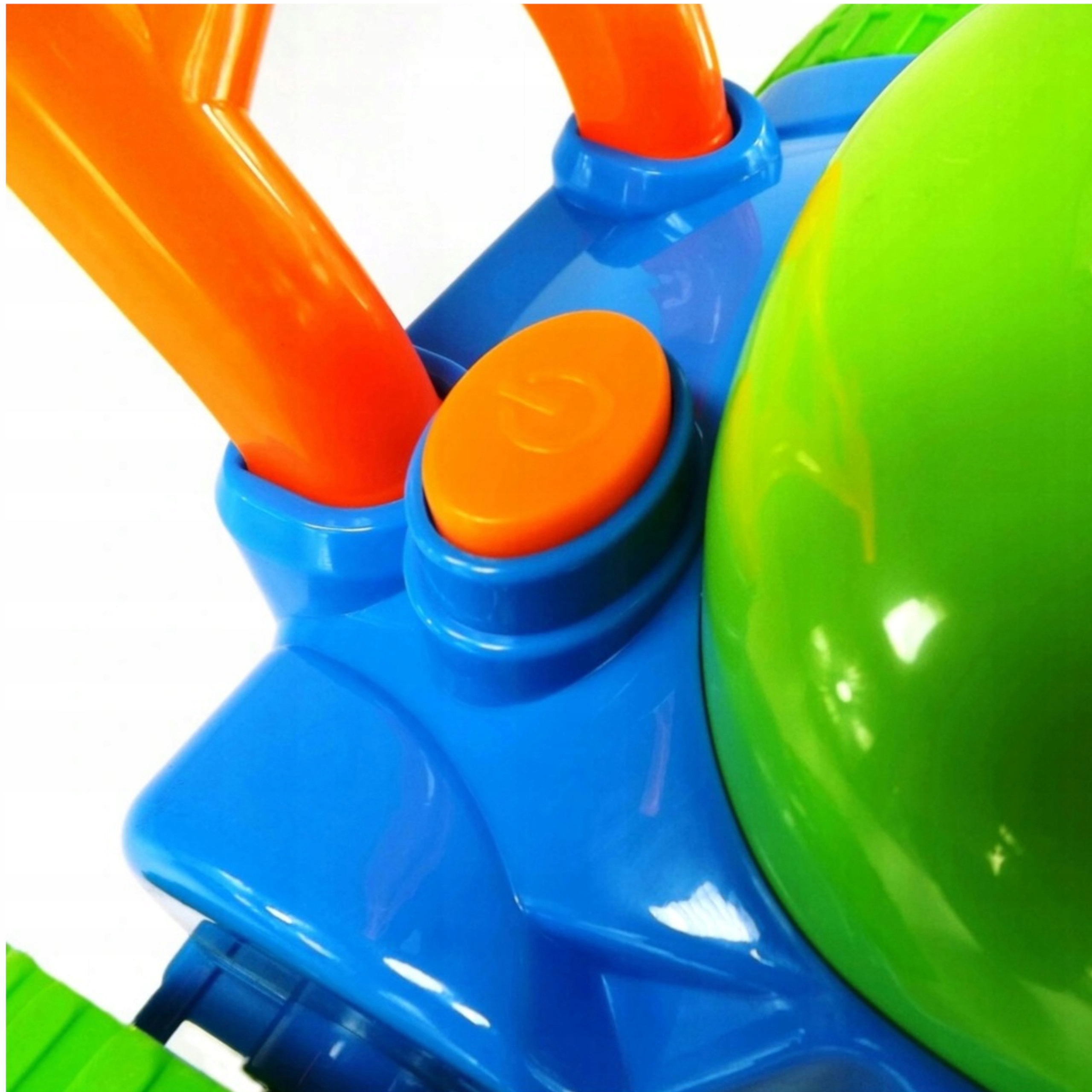 - Szeroka i stabilna rączka umożliwia dziecku łatwe pchanie oraz kierowanie kosiarką. Zabawka jest wielokolorowa, co dodatkowo zwraca uwagę dziecka i zachęca je do aktywnej zabawy na świeżym powietrzu.