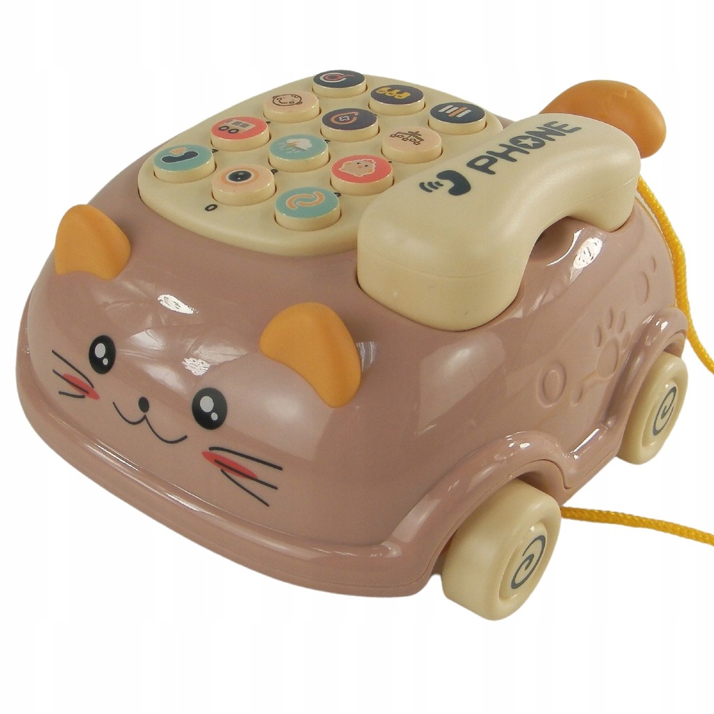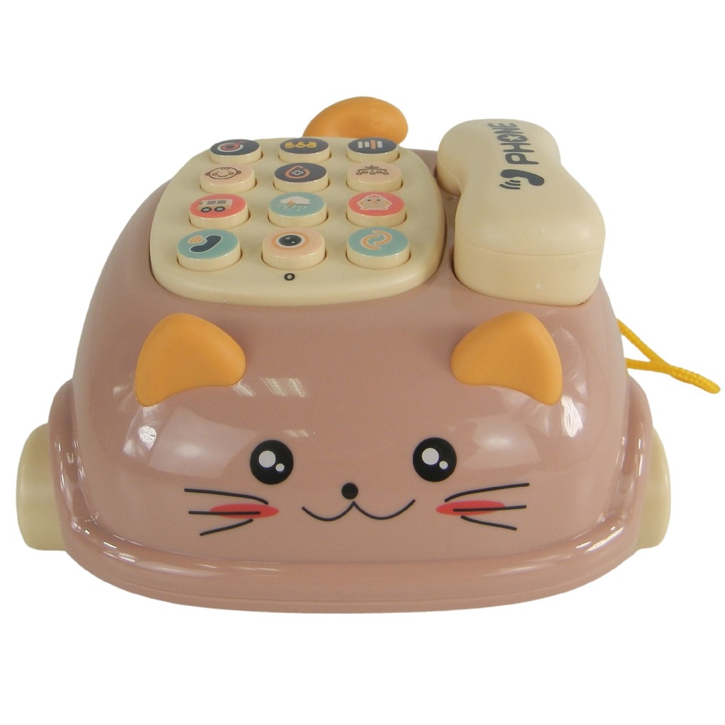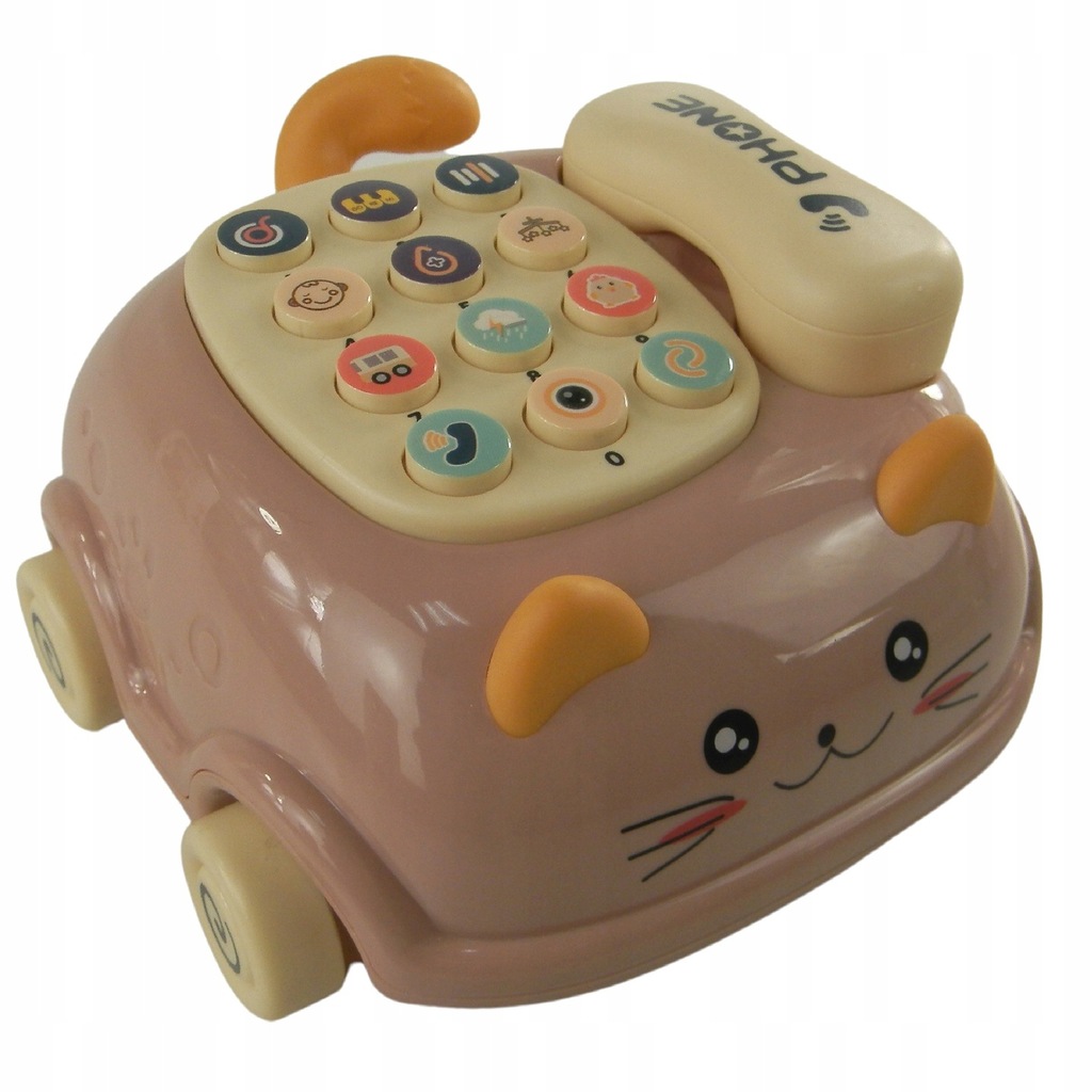 Telefon dla dzieci kotek jeździk dźwięk światło gryzak