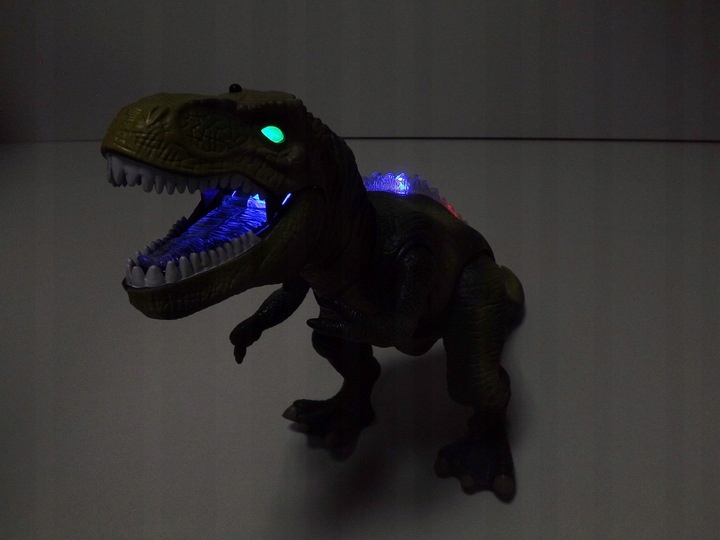 2. Po włączeniu dinozaura świeci, rusza głową, rękami i ryczy.