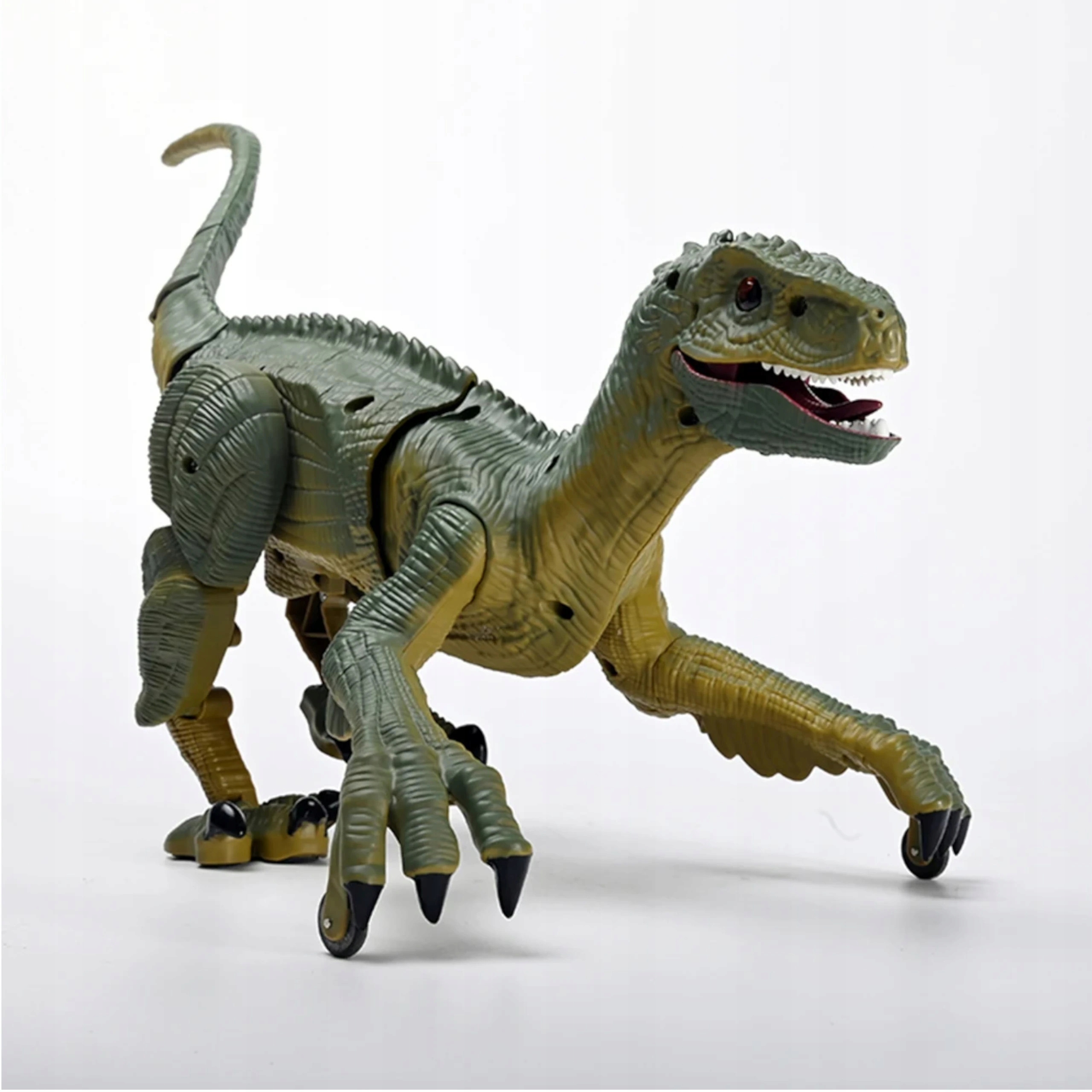 Dzięki efektom dźwiękowym i świetlnym ten dinozaur chodzi w realistyczny sposób. Na górze głowy dinozaura znajduje się przycisk, który po naciśnięciu wprowadza Velociraptora w szybki bieg, bez konieczności używania pilota.