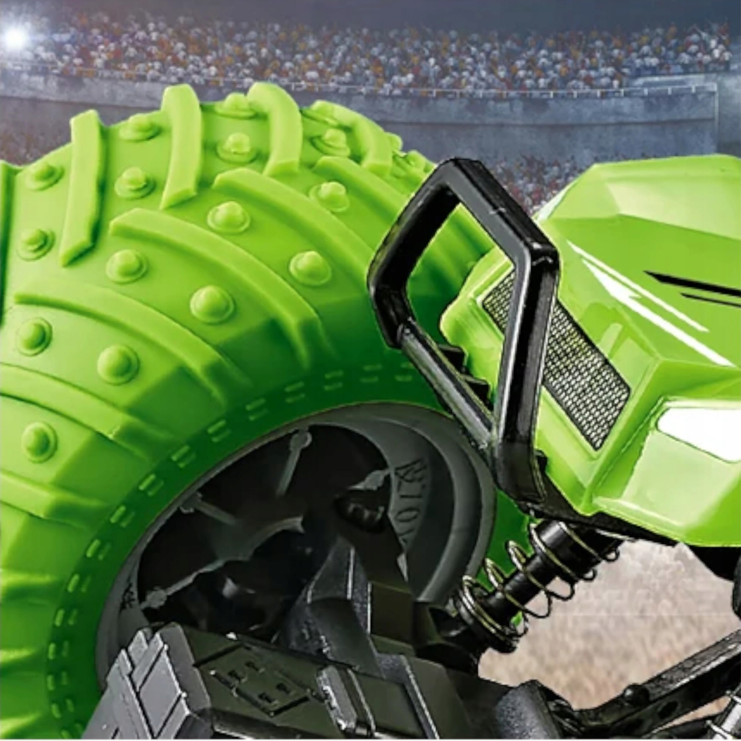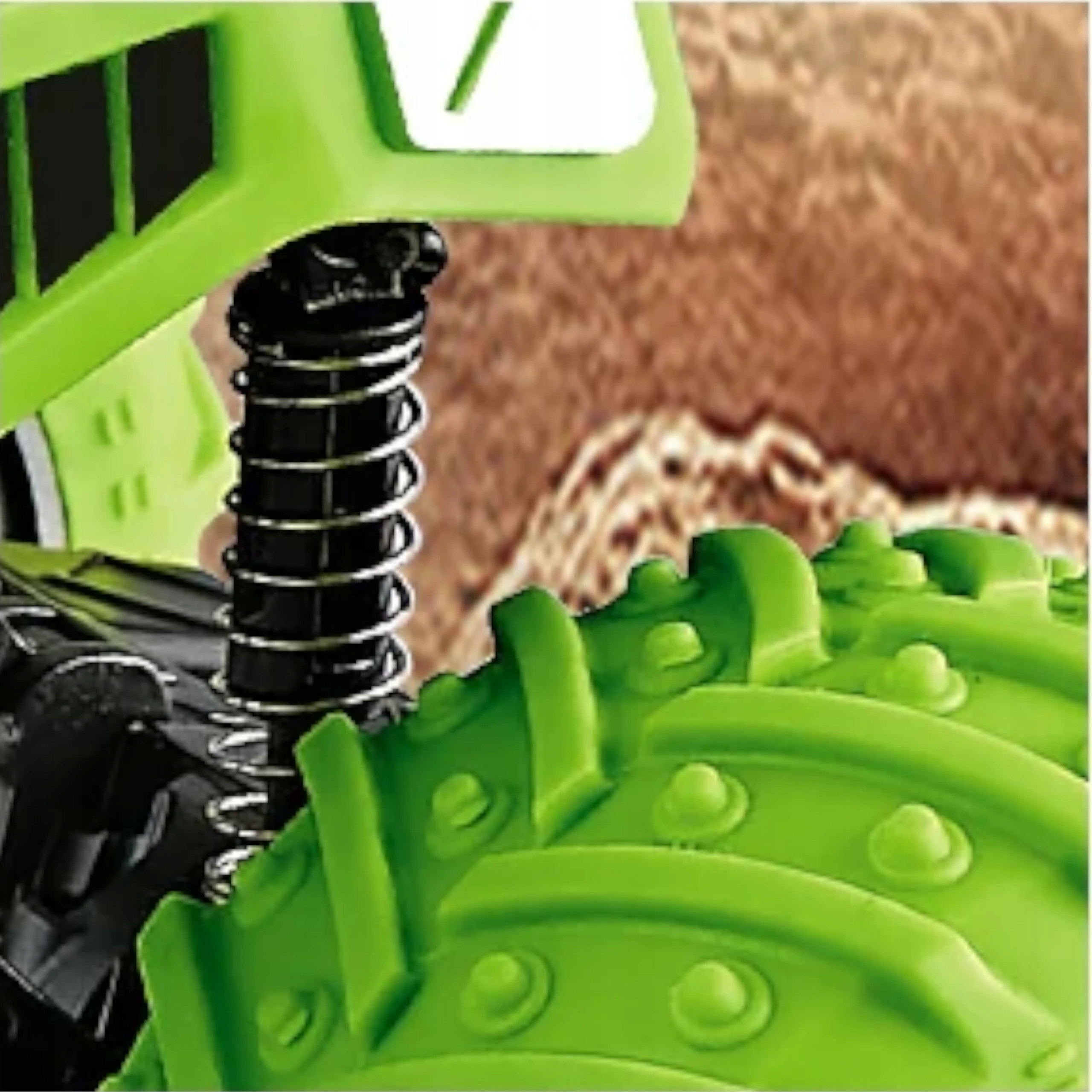 Masywna budowa i duże gumowe koła pozwalają na pokonywanie przeszkód, co uatrakcyjnia zabawę. Dodatkowo obudowa jest na sprężynach, co amortyzuje w razie gdyby auto najechało na przeszkodę.
