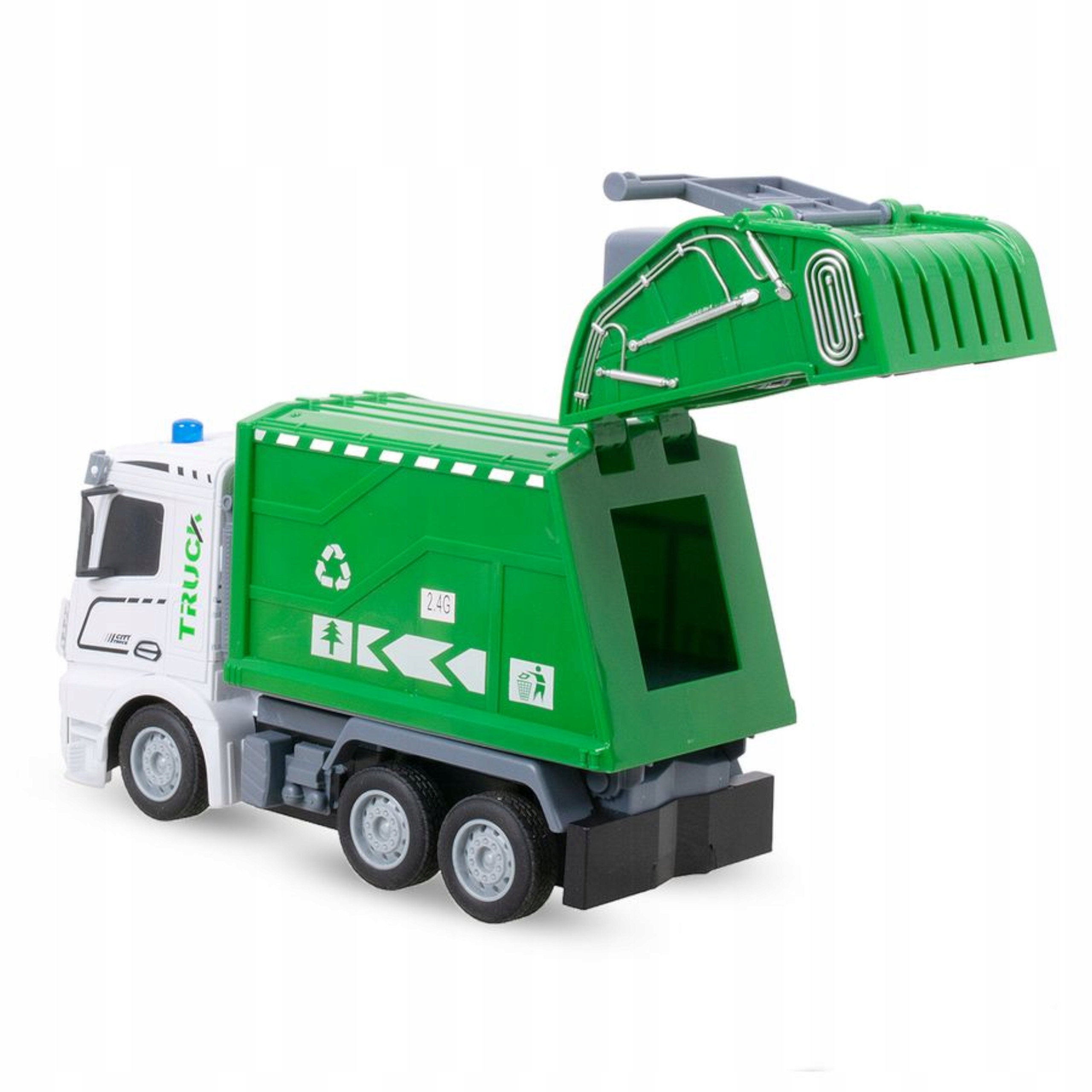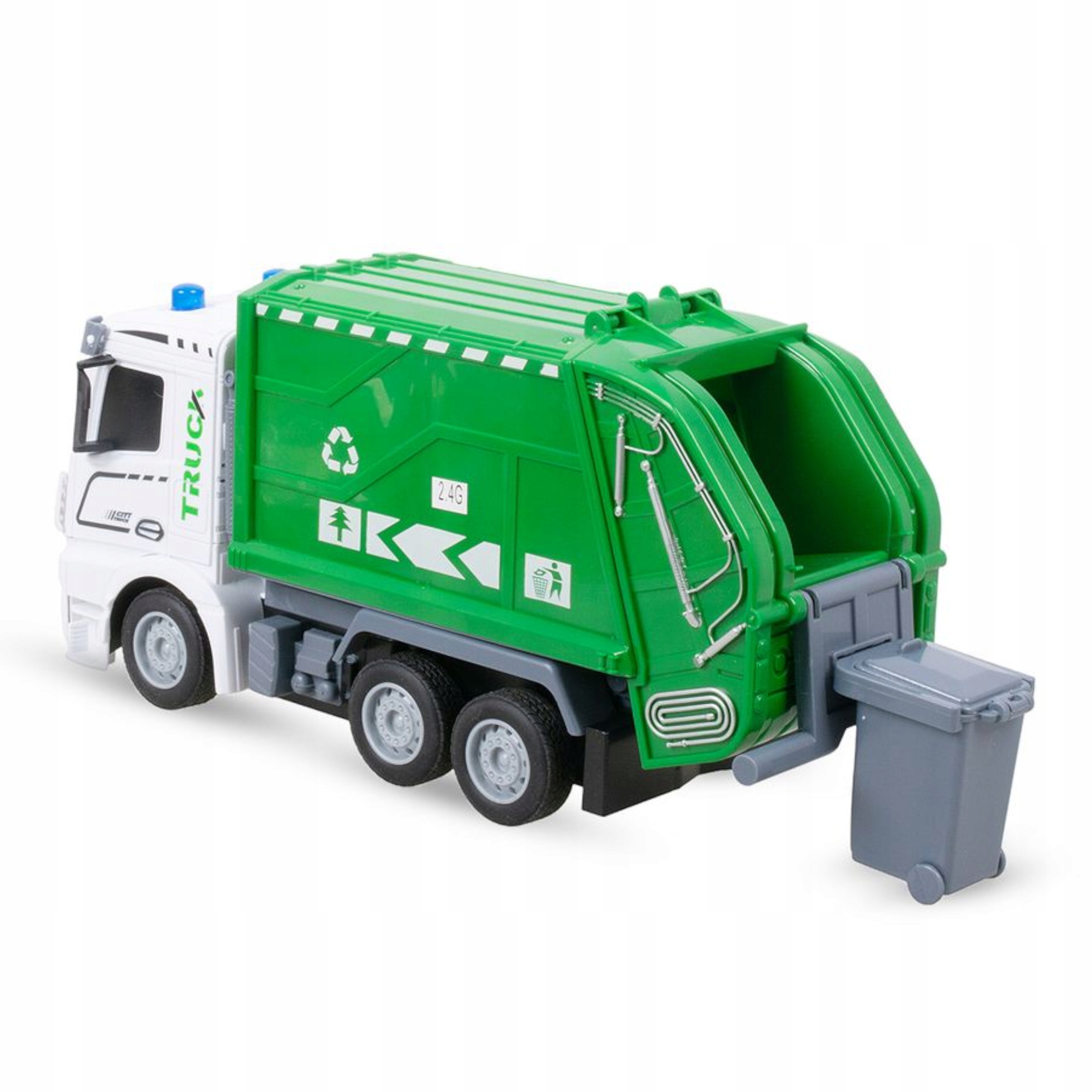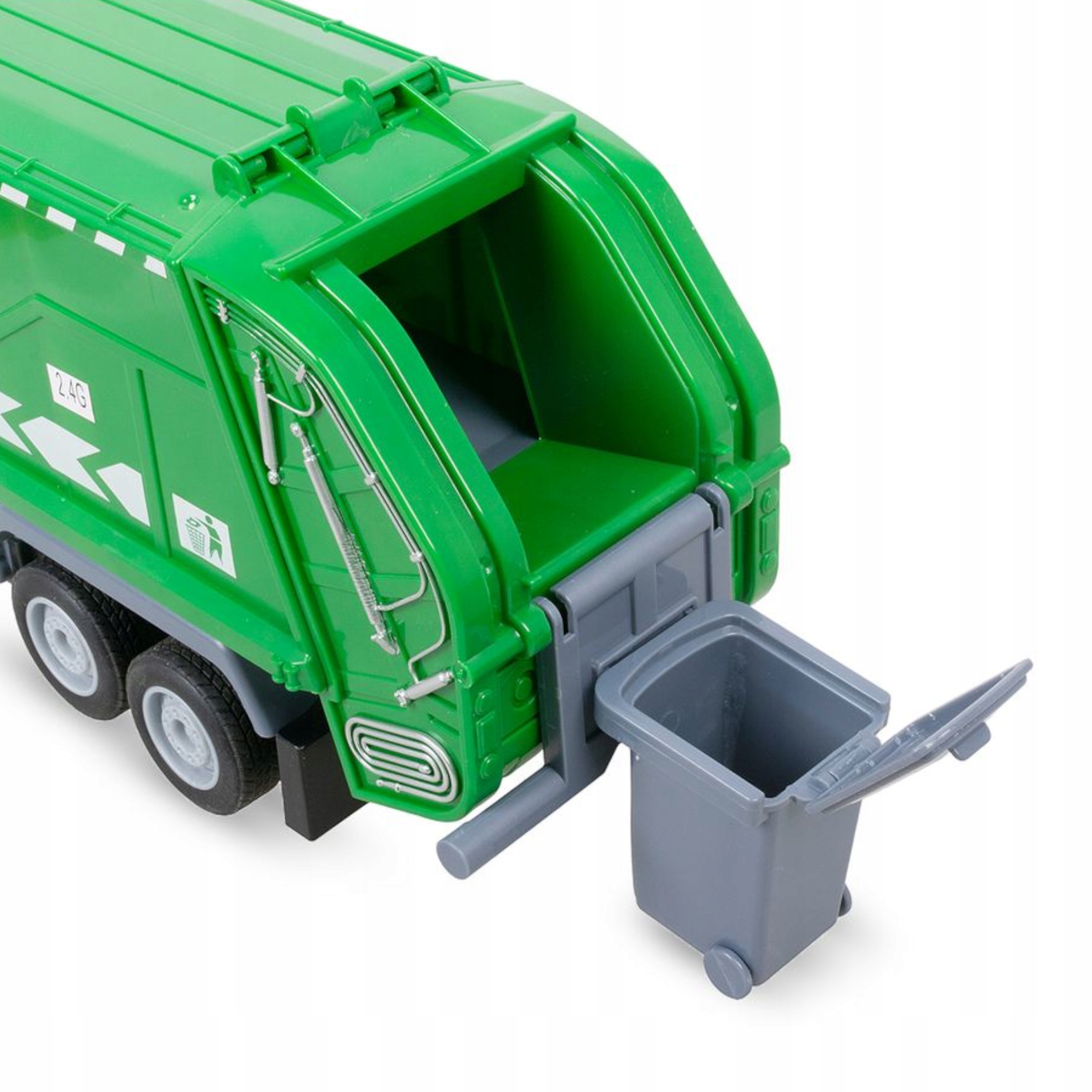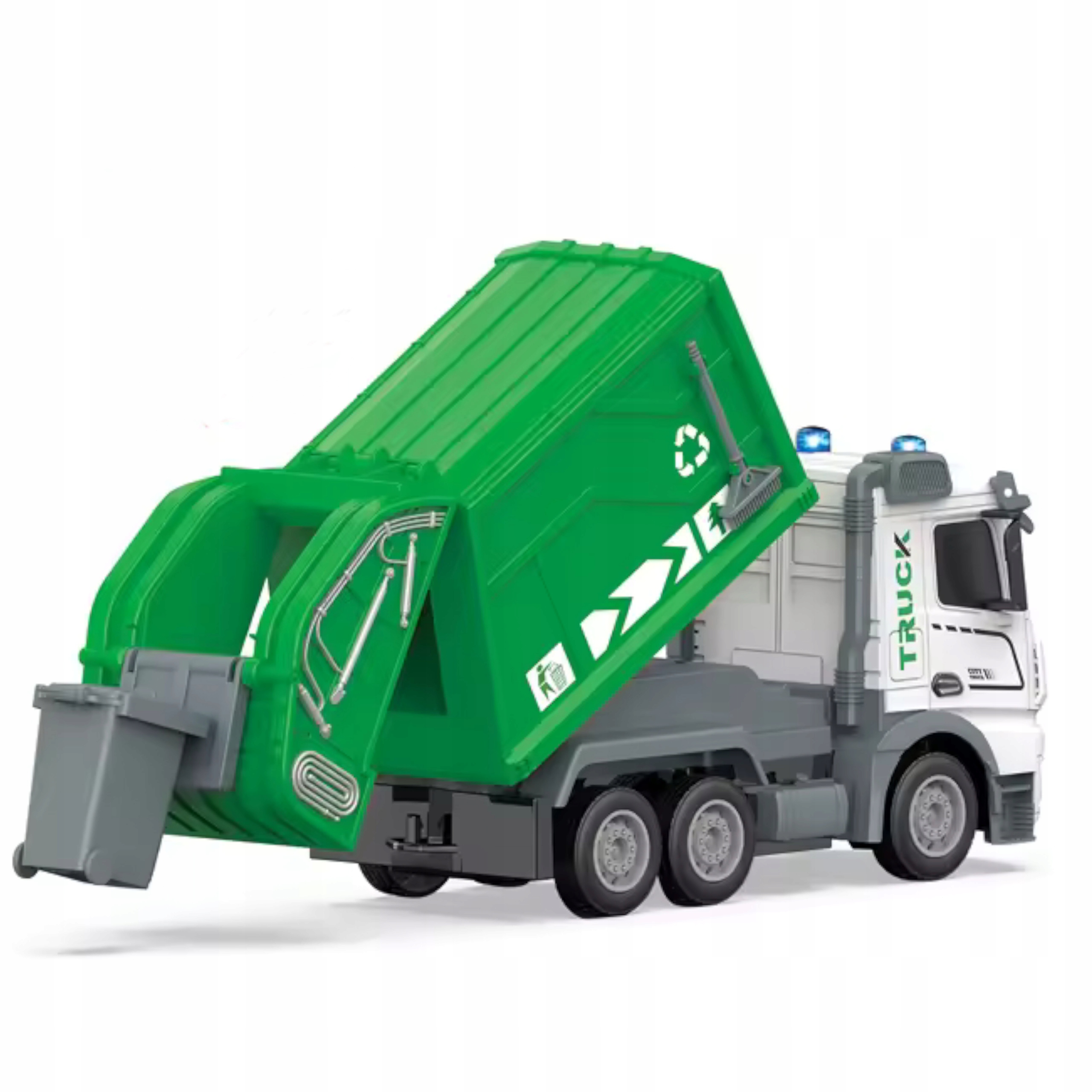 Zabawka pozwala dziecku odkryć fascynujący świat pracy służb miejskich z unikatowym modelem zdalnie sterowanej śmieciarki.