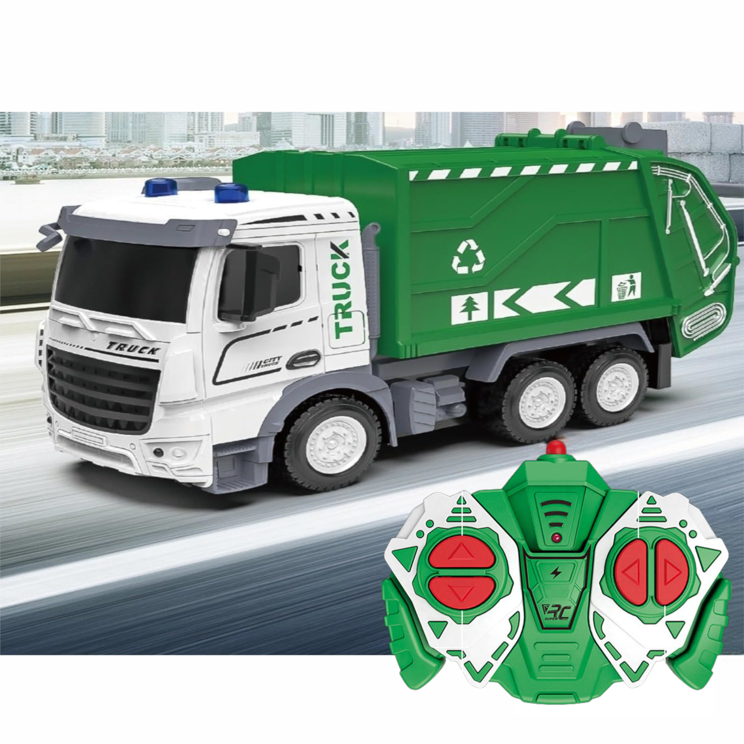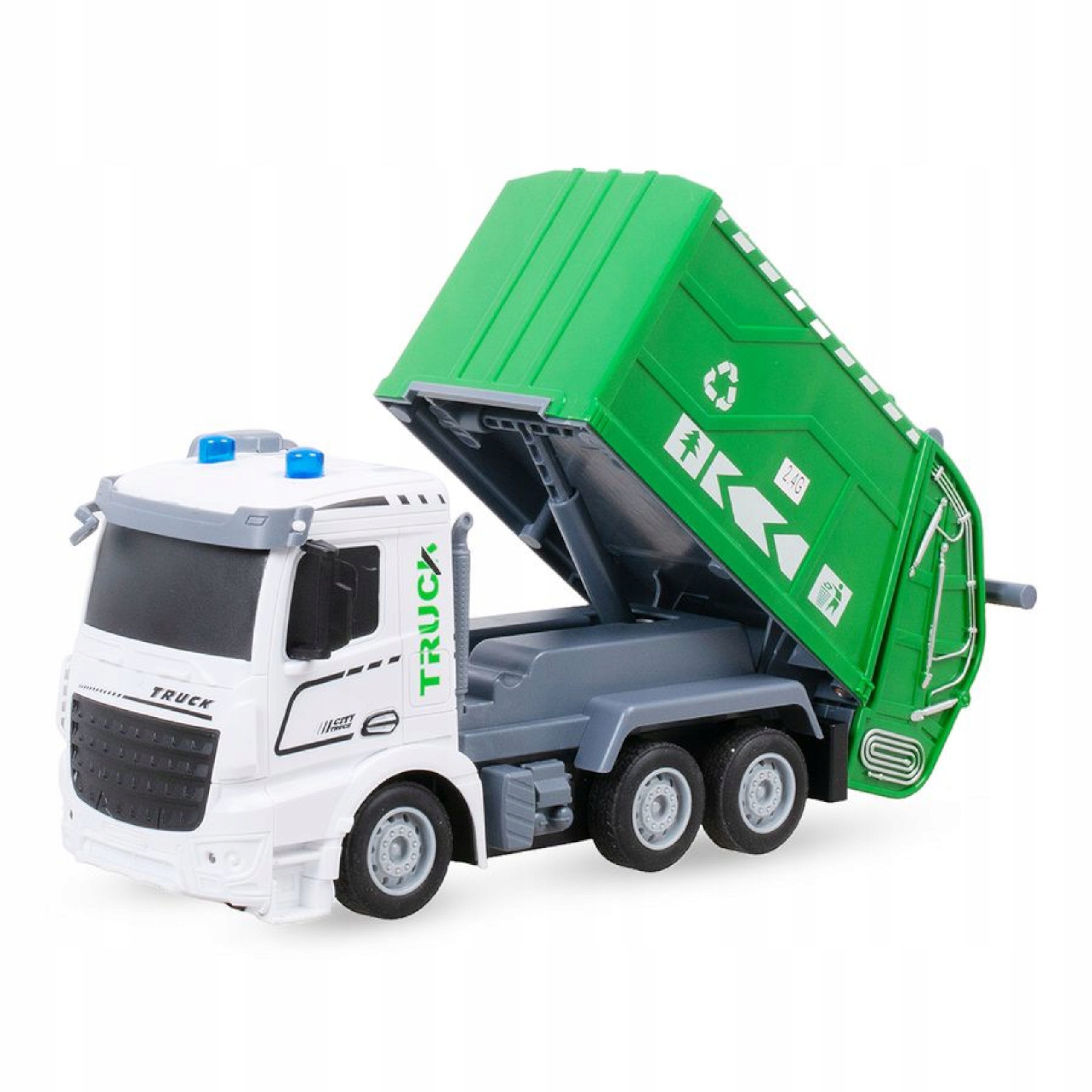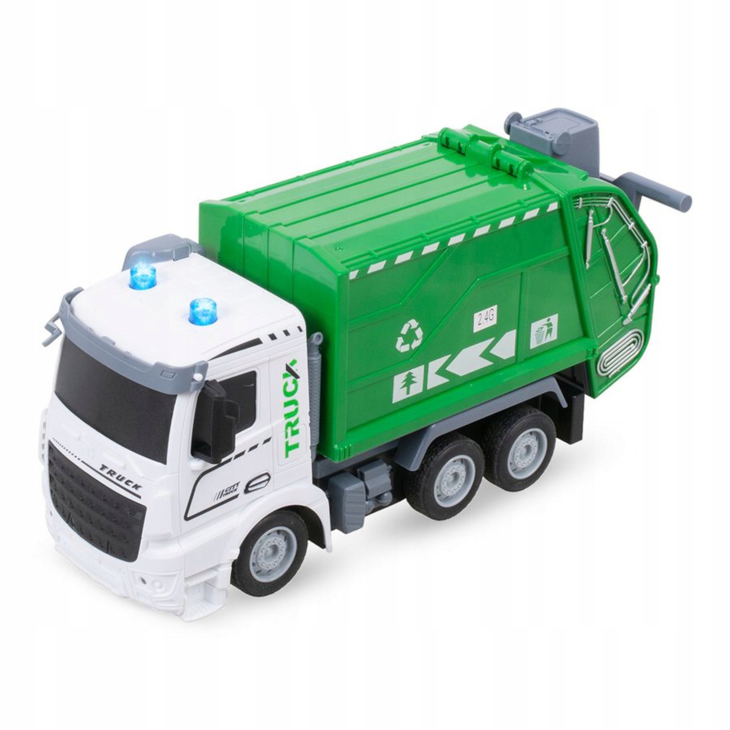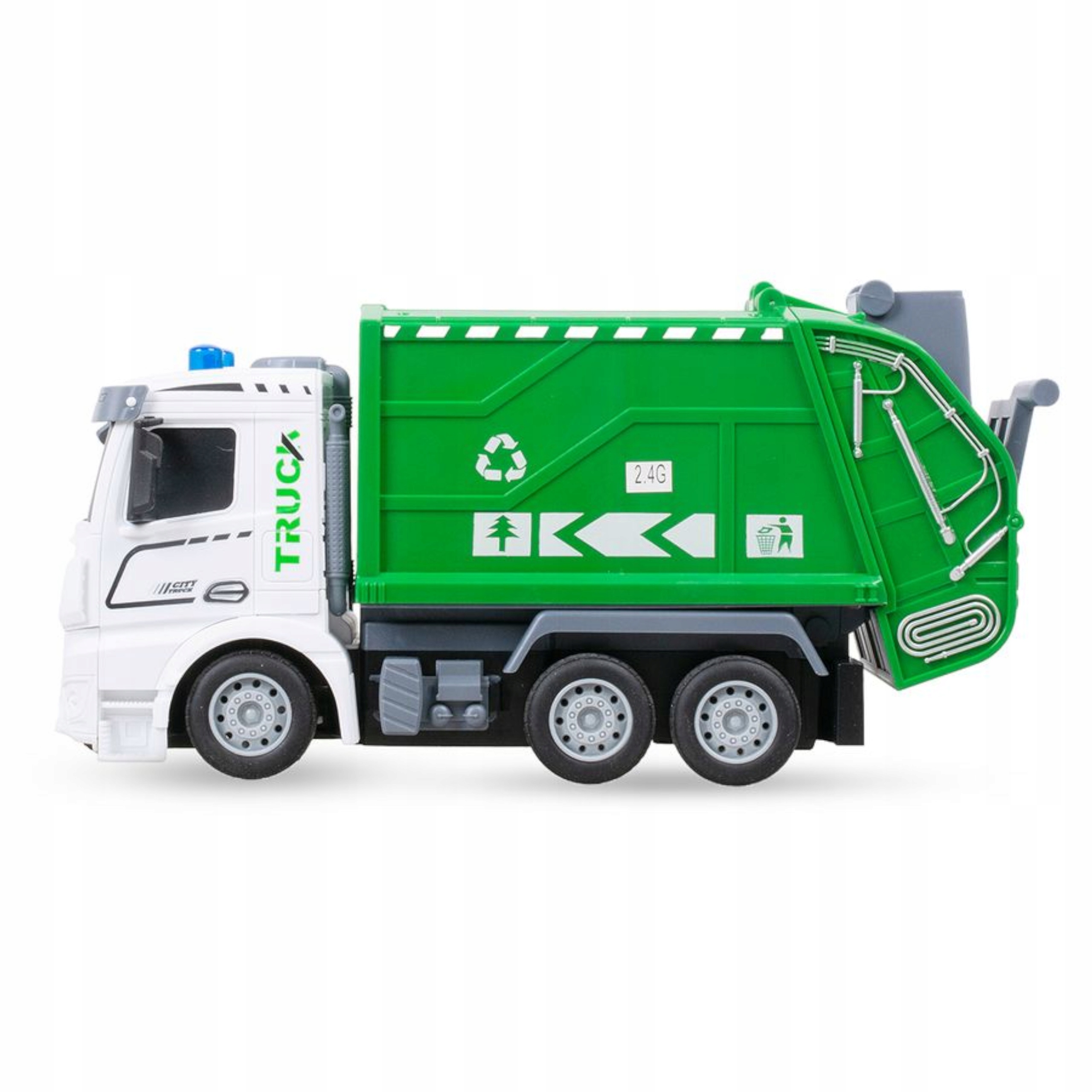 Zabawka pozwala dziecku odkryć fascynujący świat pracy służb miejskich z unikatowym modelem zdalnie sterowanej śmieciarki.